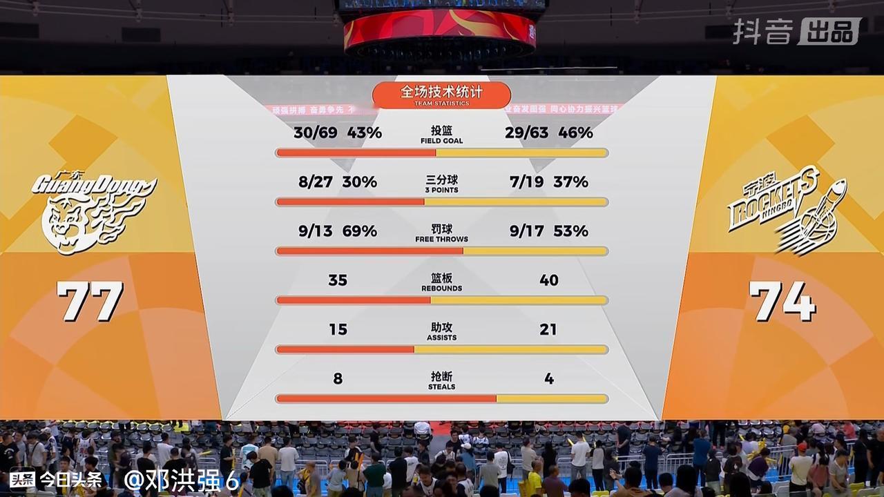 广东宏远助教拉多维奇代执教,广东宏远完成了15分大逆转77:74险胜浙江宁波。