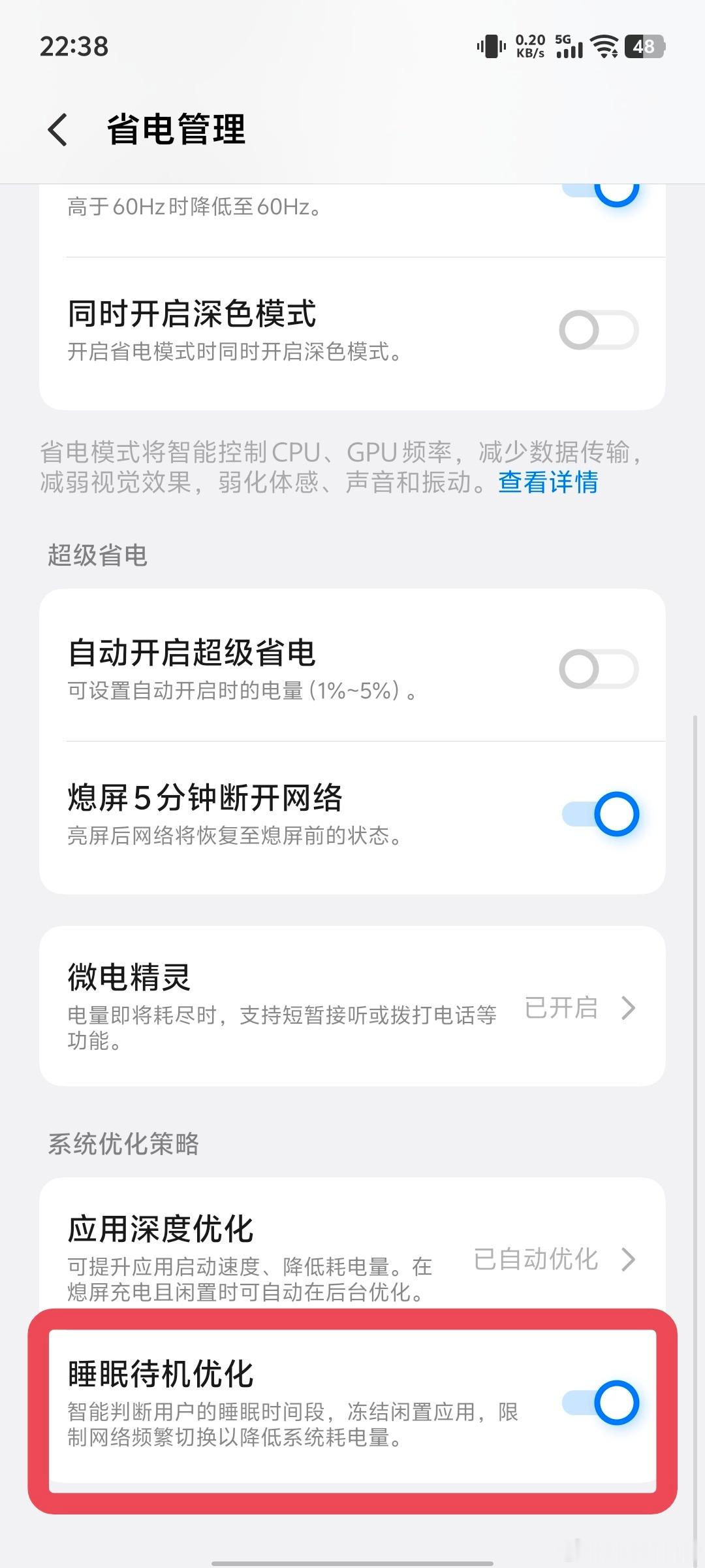 2. 开启微电精灵+睡眠待机优化,关键时刻可以打电话和再延长续航,能救急。