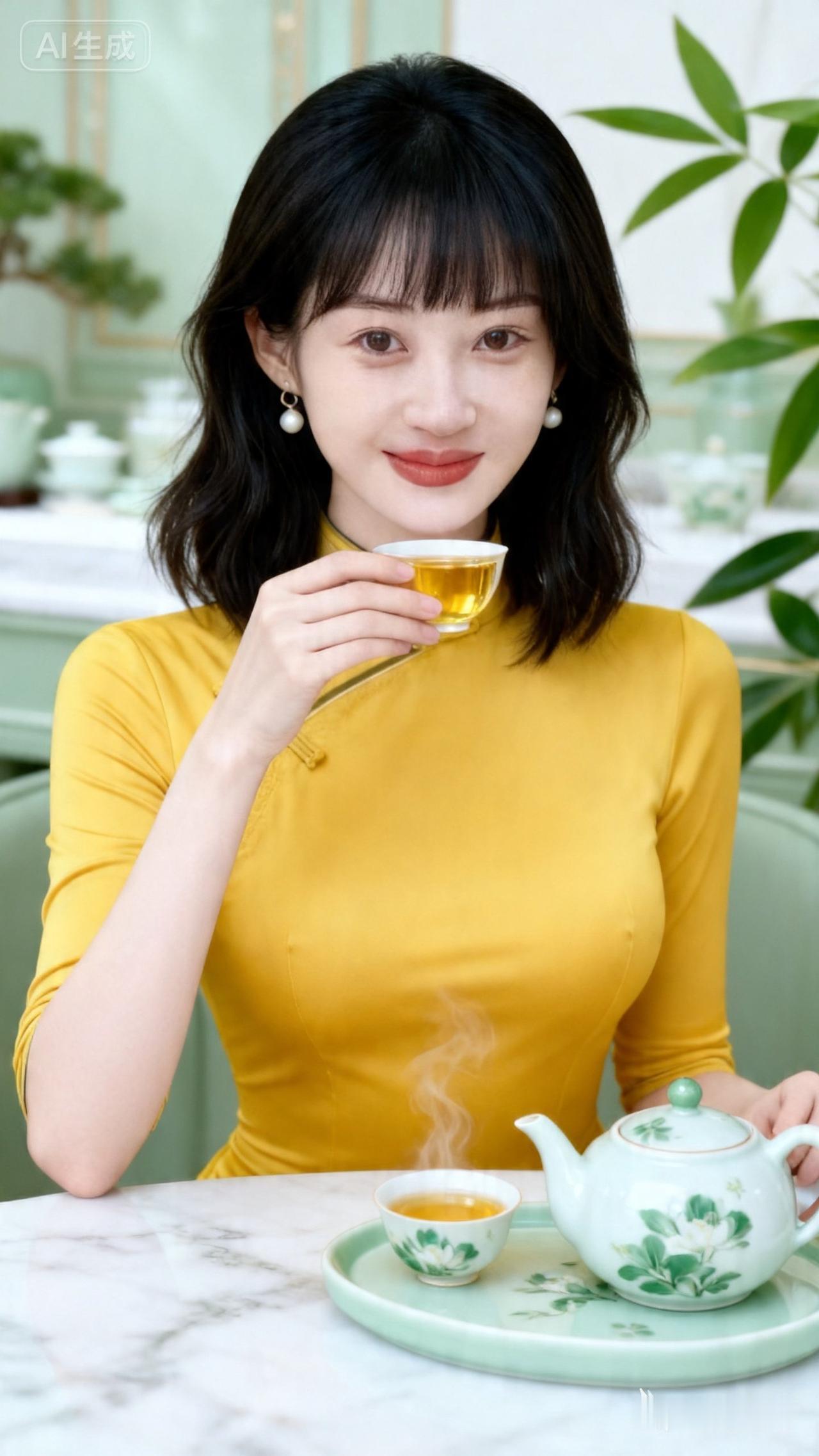 在柔和的光线下,她仿佛是时光里走出来的精灵,带着一丝温柔与宁静。背景虚化,突显出