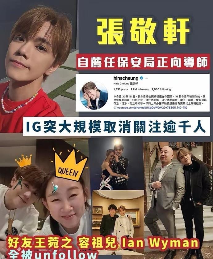 反骨仔没有啥好下场,现在两面不讨好。这条帖子我不想谈论张敬轩,我对其中的一个细节很感兴趣。就是自从他为过往的言论和作品道歉,并宣布担任香港保安局正向导师后,取关了很多人。在取消关注的人群中,我看到了容祖儿,其他两个应该也是艺人,但我不认识。那我就在想,在这个时候取消关注这些人,给我们传递什么样的信息。在张敬轩支持港暴的时候,他们是好友,当他开始转向的时候,他们取消关注,这个时机有点微妙啊。当然,我们也不能因此断言什么,有可能原因很复杂