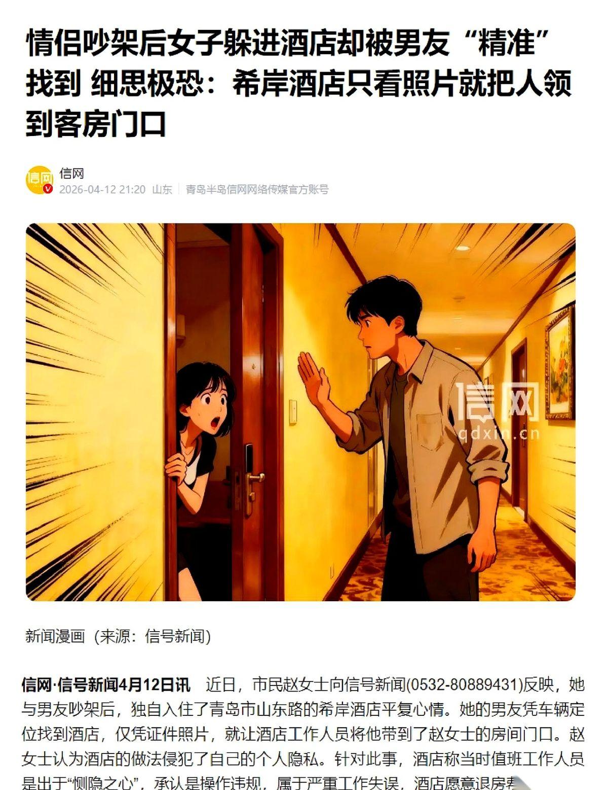 山东青岛一个酒店,干了件让人后背发凉的事。 一个姑娘跟男友吵完架,为了图个清静,