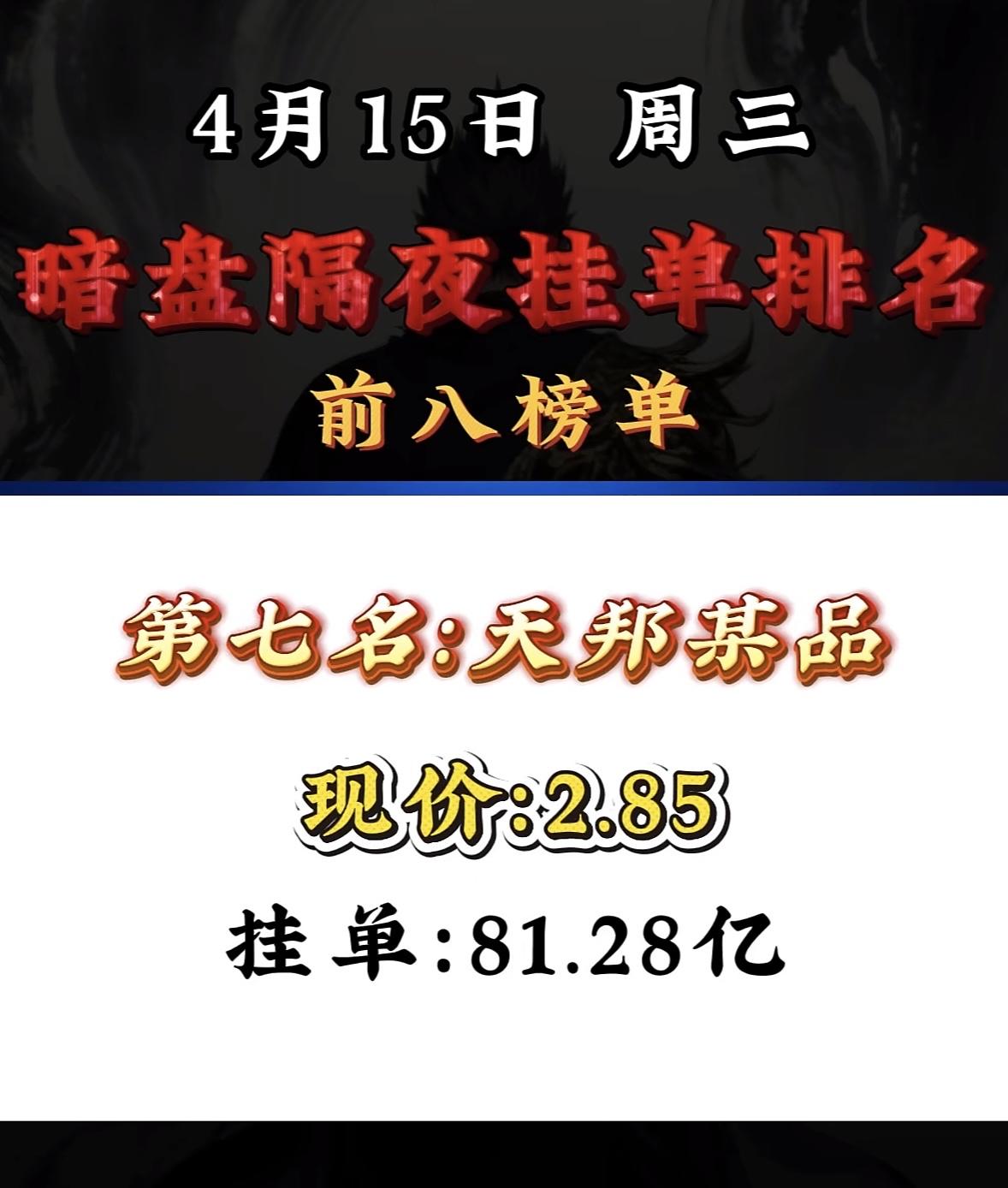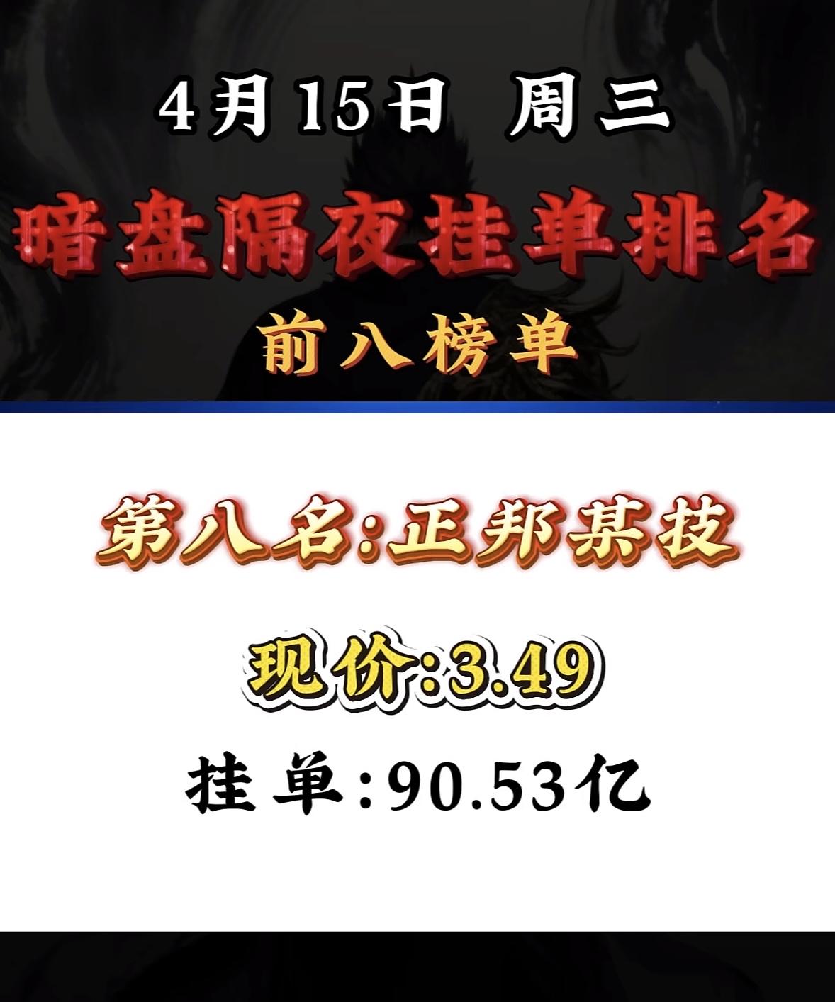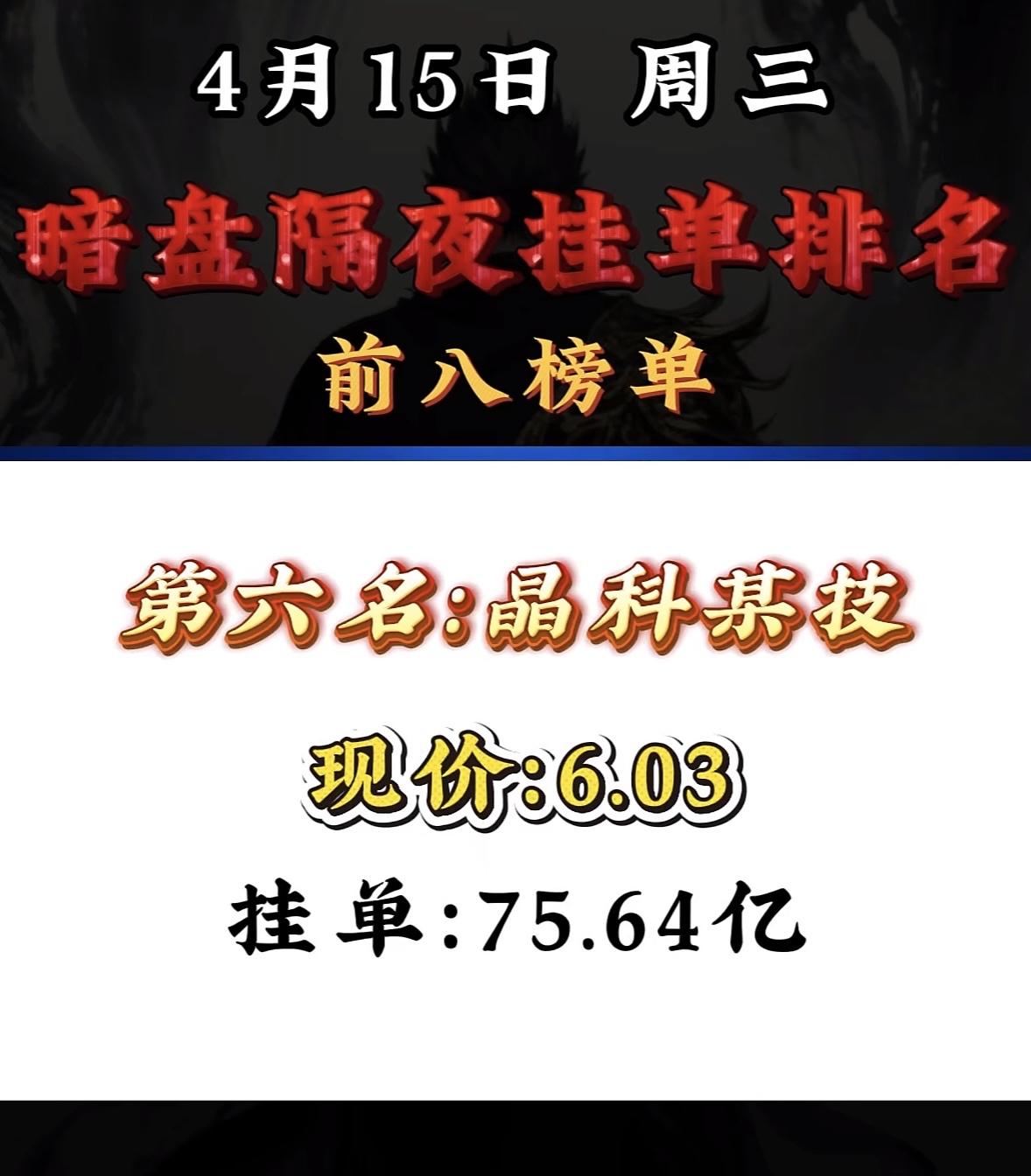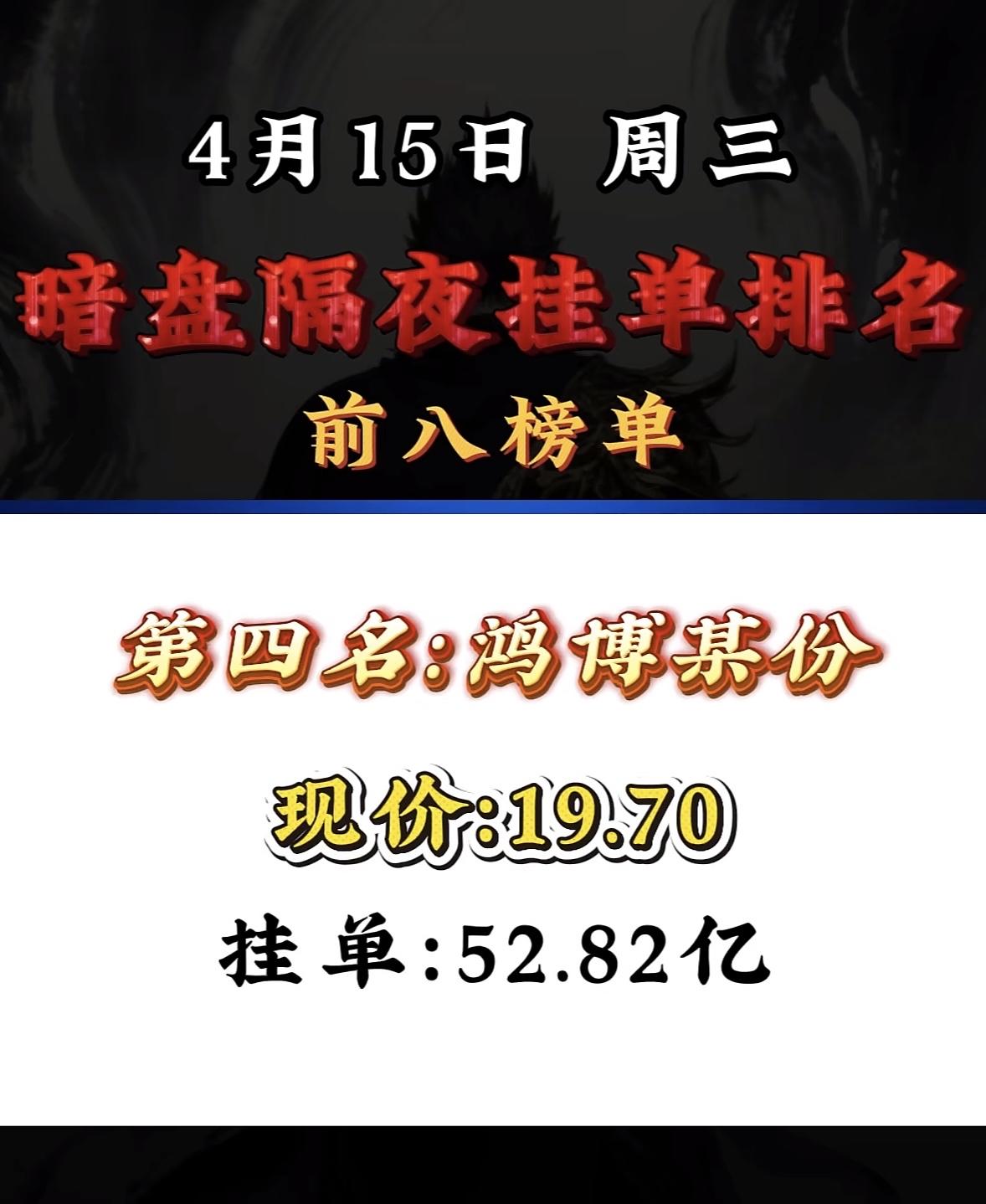 4月15日周三暗盘隔夜挂单排行榜揭晓
