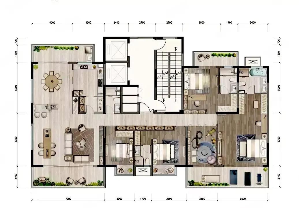 实用主义,在这263㎡五房里体现得淋漓尽致。 7米大阳台贯穿客厅,采光直接拉