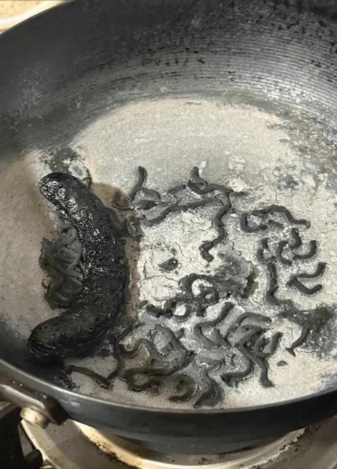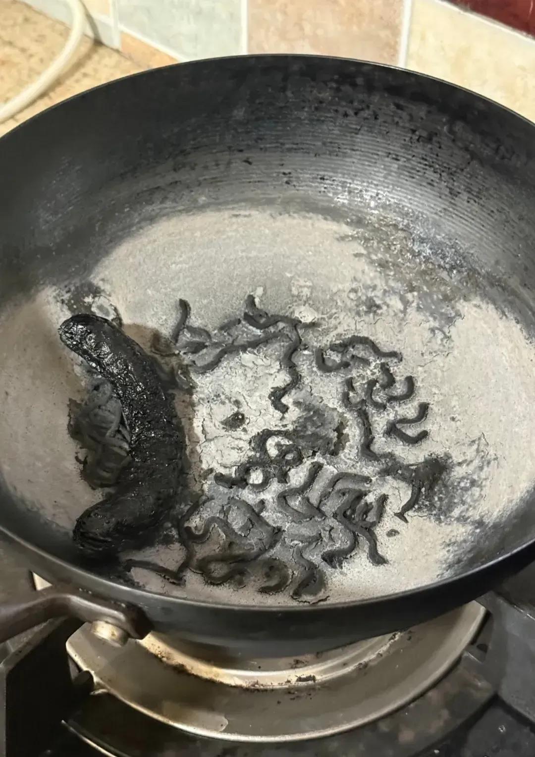 本来想做个早餐,结果给锅烧出了甲骨文,我妈问我是不是在炼丹?[捂脸]