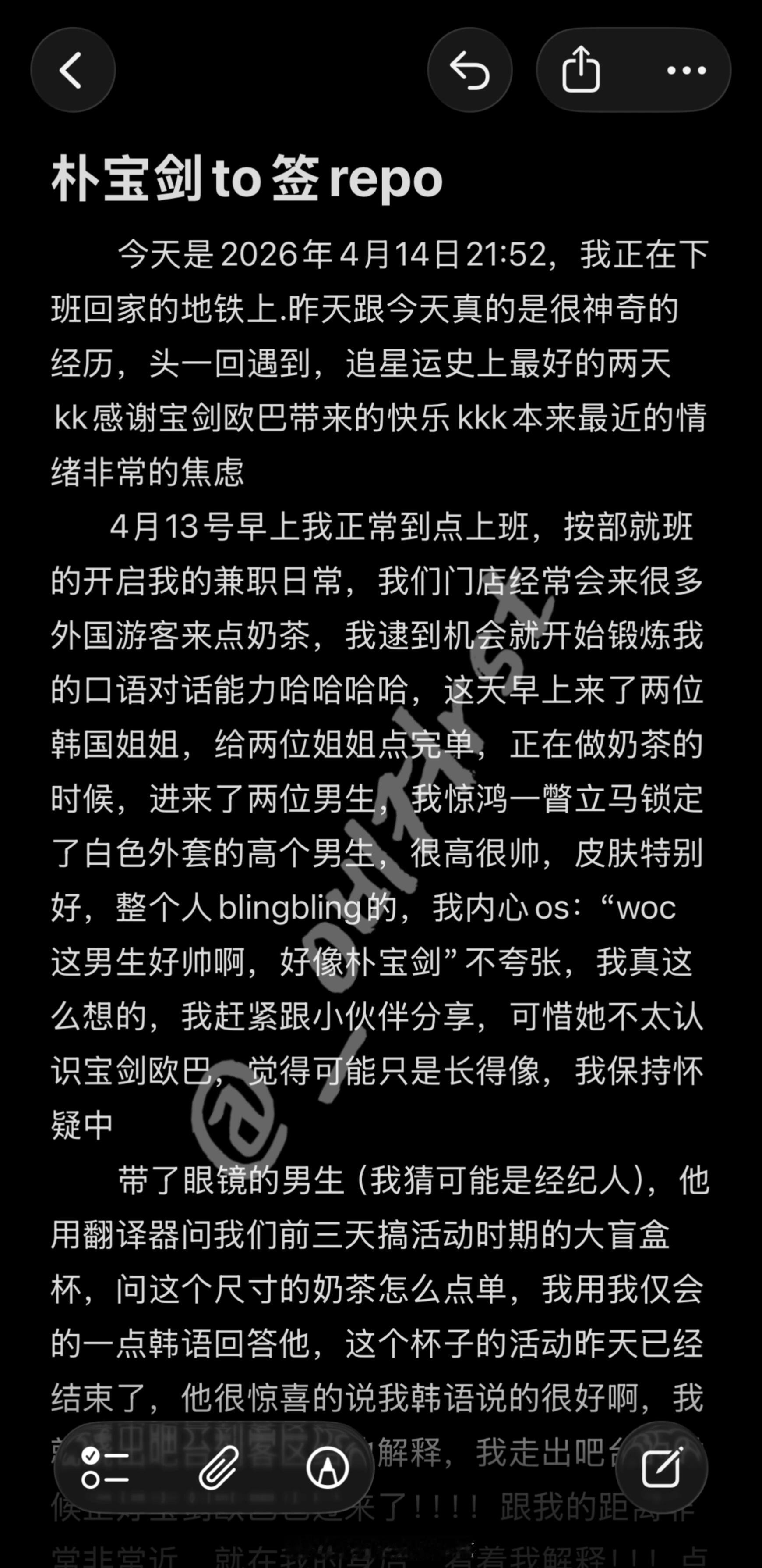 一点儿都不羡慕😡得到了朴宝剑TO签朴宝剑给奶茶店上班网友TO签