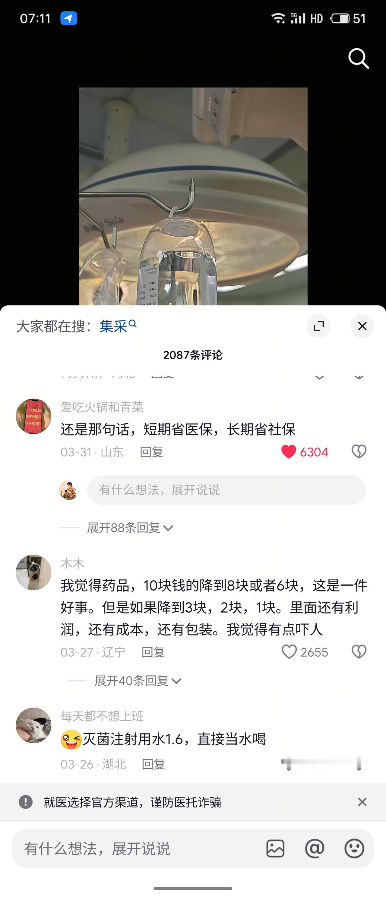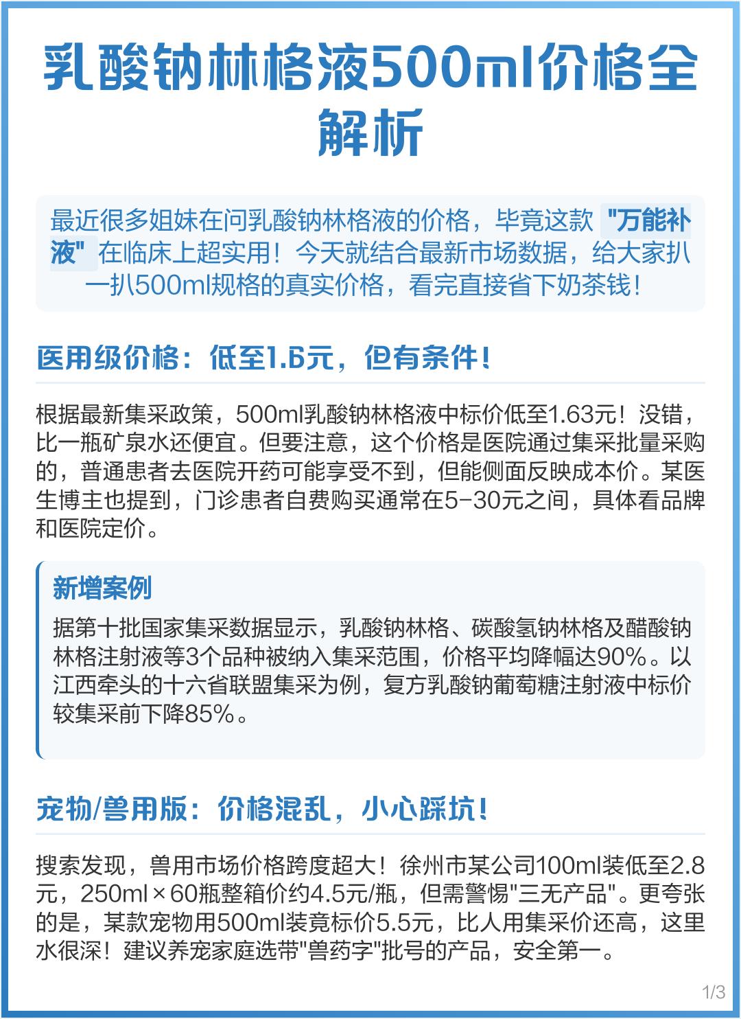 集采后500ml的补液常规药乳酸纳林格液1.6元,还不如一瓶农夫山泉。同时他的生