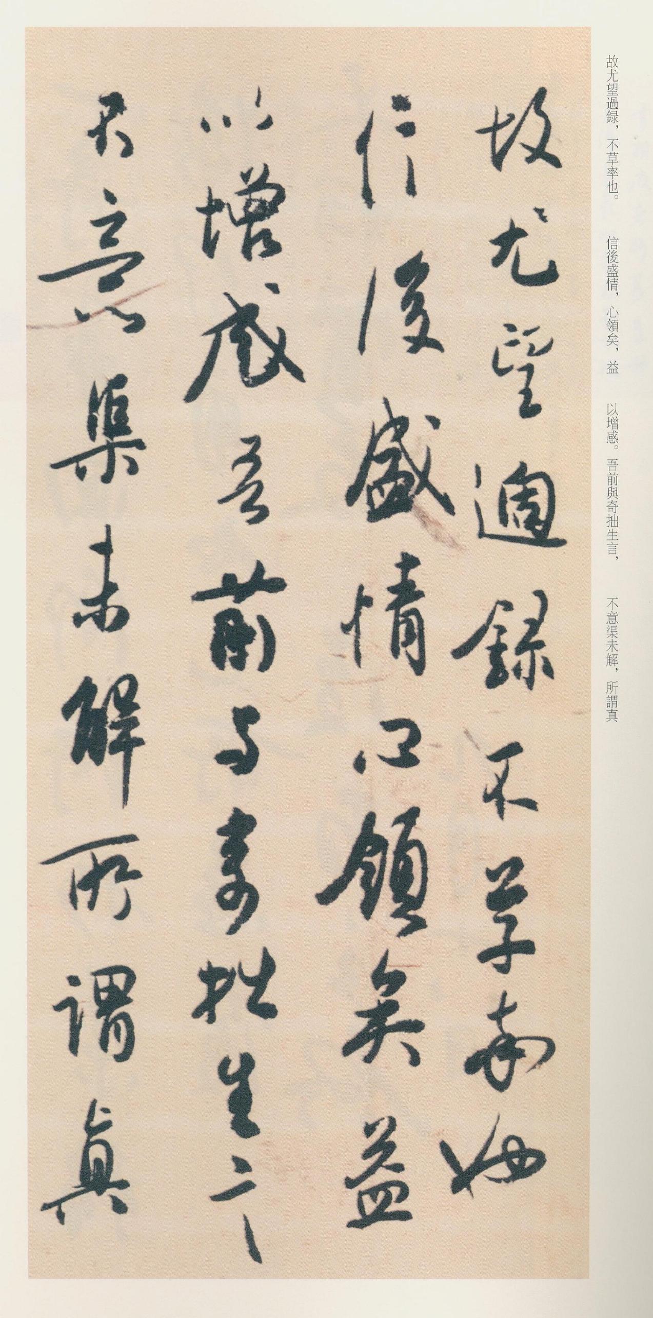 头一个提醒是关于路径选择的。他主张直奔晋人,原因是他看清了后代帖学里掺了太多的添加剂。