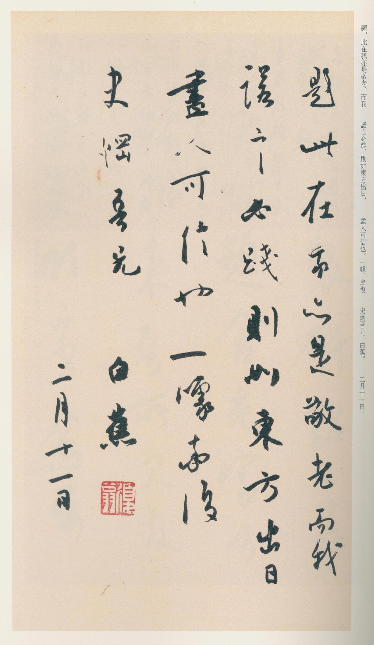 从帖学纯度的角度来衡量,白蕉的确达到了一个极其罕见的程度。一辈子守着二王,不受时风干扰,笔下气息醇正。
