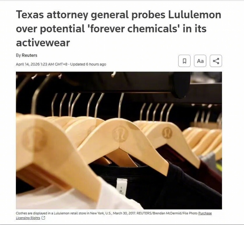 据中国科学报报道,PFAS是一类藏在日常生活中的“永久化学品”,目前已知种类超过1万种。由于PFAS的碳-氟键极为稳定,导致其在自然环境中难以降解,并可通过食物链富集,在生物体内长期积累,可能对人体健康构成潜在威胁。目前,得克萨斯州总检察长办公室将对照该州安全标准,全面核查Lululemon的检测流程、限用物质清单及供应链管理措施。此前,Lululemon一位发言人已作出回应,表示公司早在2023财年已全面淘汰PFAS的使用,历史上仅在少数耐用防水类功能性产品中有限应用,占比极低,截至2024年1月已彻底停用。目前公司全线产品均不含PFAS,并已建立供应链管控机制。