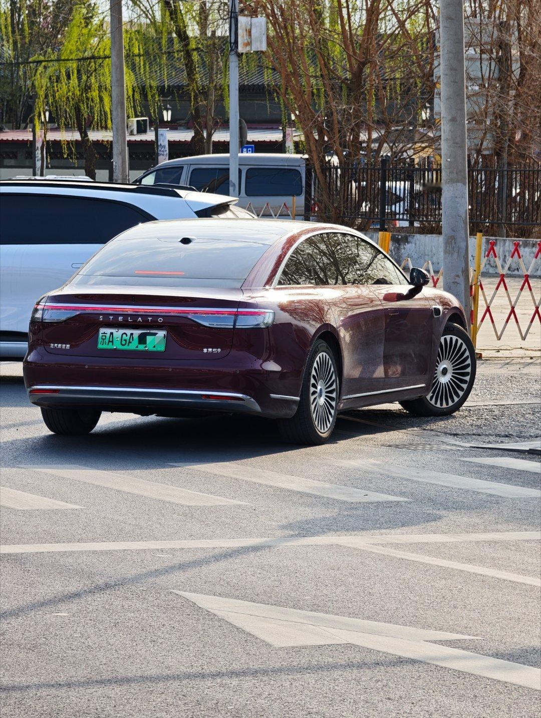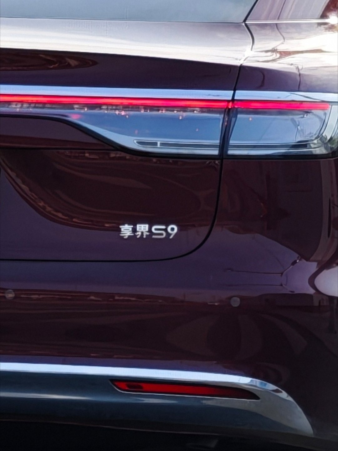 享界S9这个角度很好看酒红色车身+密条幅轮圈,相当优雅贵气~但是尾标这个“S”,