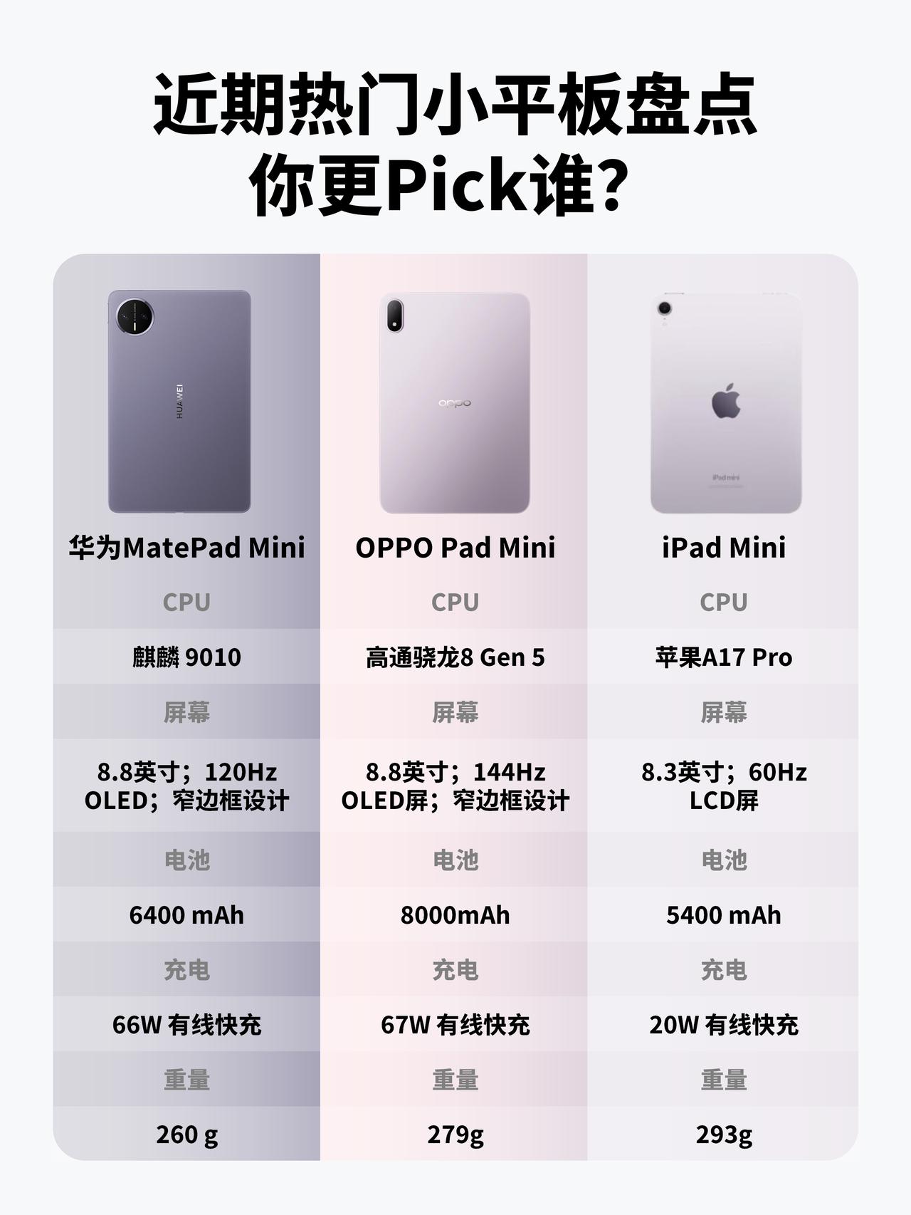 以前能选的基本只有iPad mini,现在国产小平板也彻底支棱起来了,