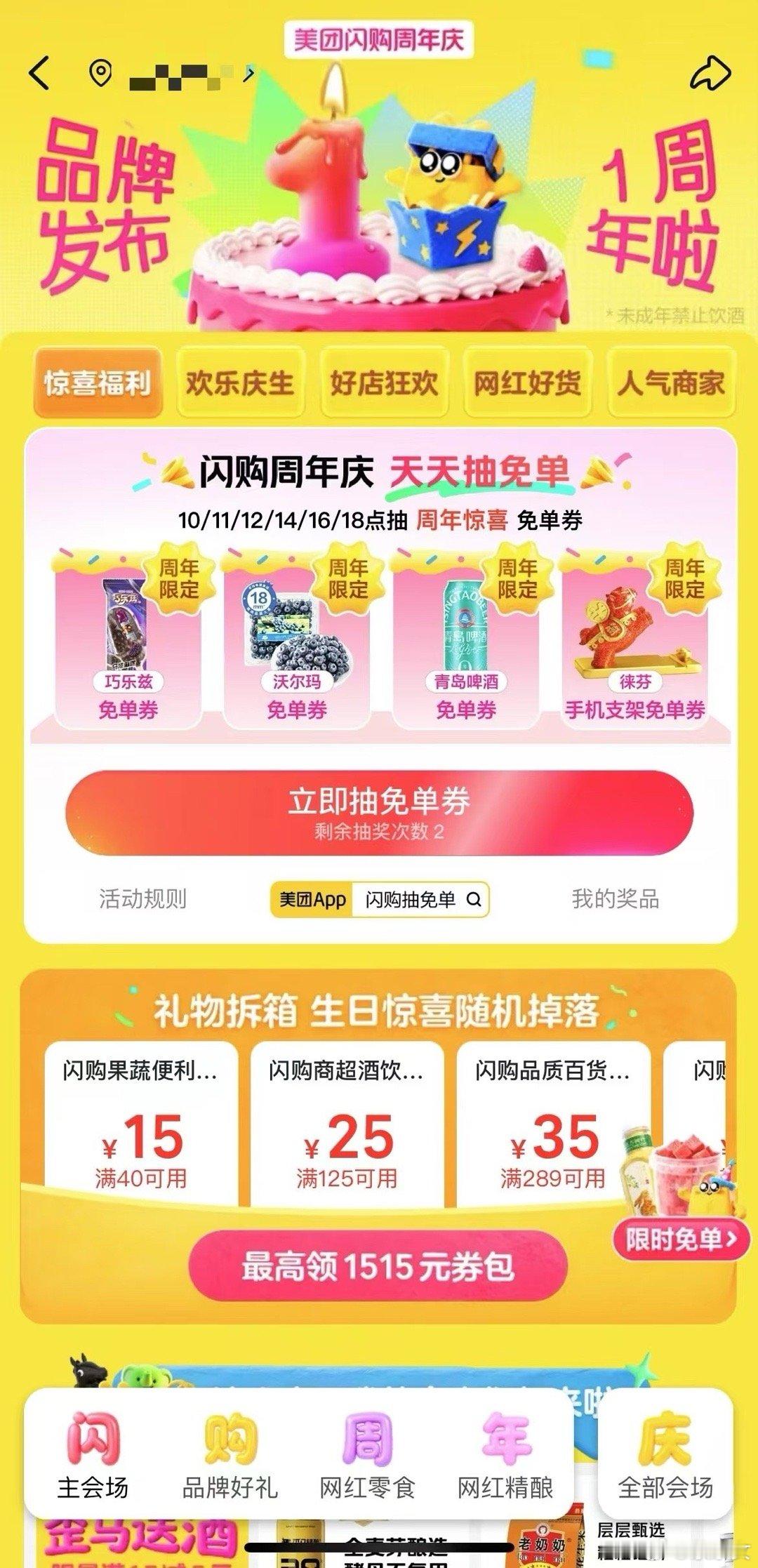 美团闪购周年庆 活动氛围热烈,好物优惠丰富,多款商品价格实惠,官方补贴诚意十足。