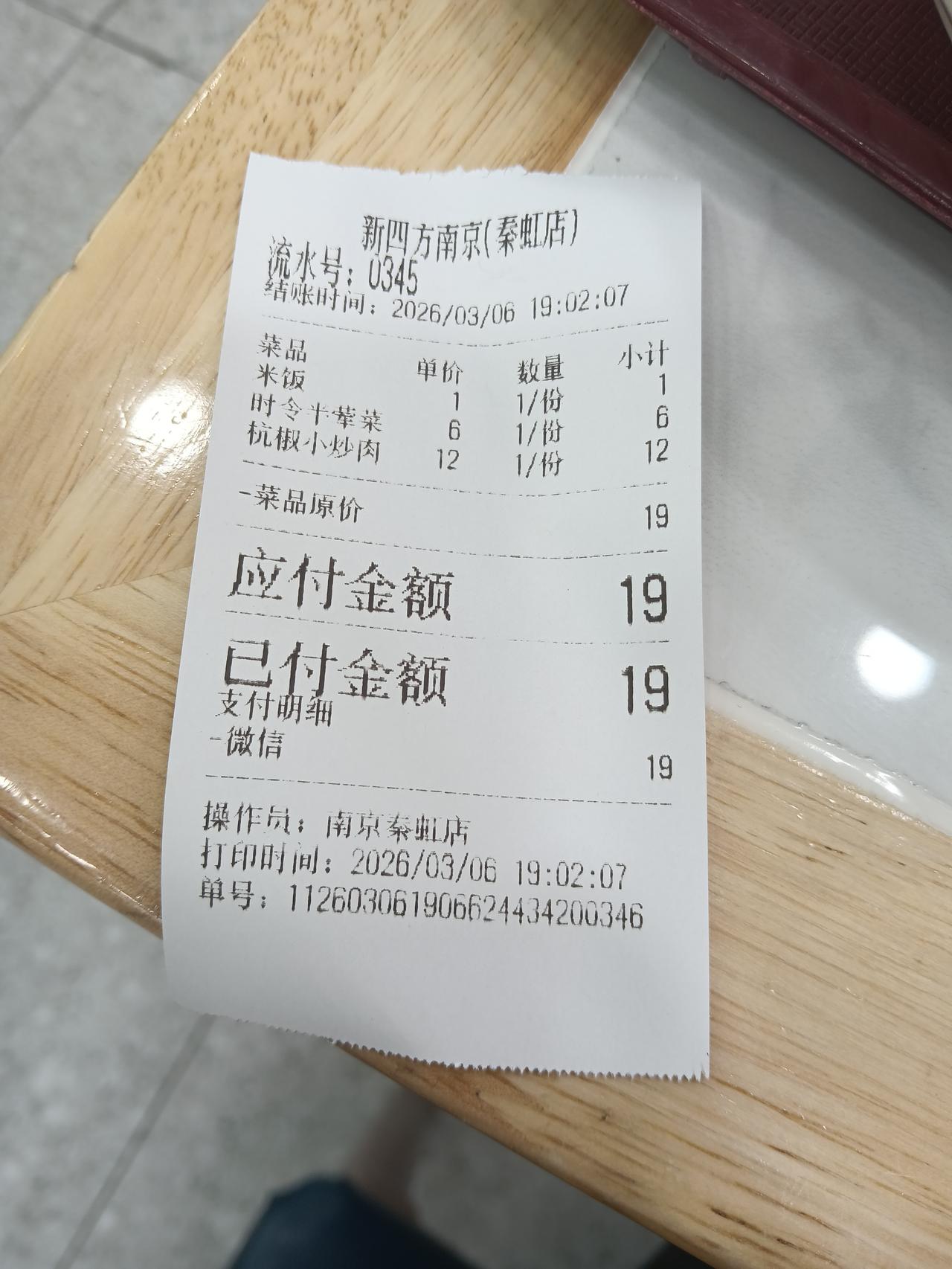 不过杭椒小炒肉确实挺下饭的,菜没吃完,饭已下肚,看样下次点个一样带杭椒的菜加一碗饭和免费的汤也够了。一个人吃个19元有点奢侈了,还吃不完[偷笑]