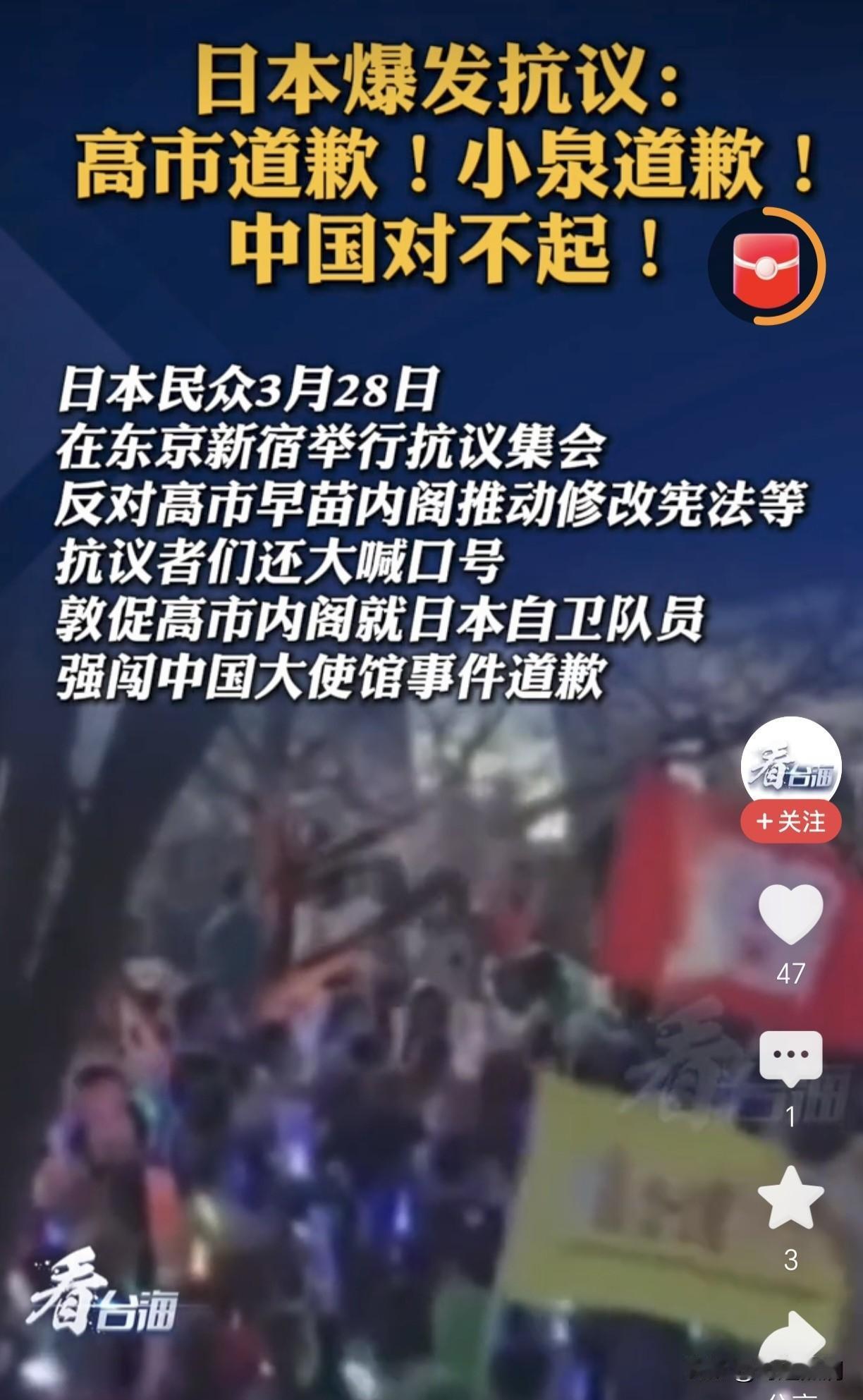 先掰扯清楚这场抗议的核心:3月24日,日本自卫队少尉持刀强闯中国驻日使馆,扬言杀害外交人员,这是公然践踏《维也纳外交关系公约》的挑衅行为;而高市早苗内阁推动修宪、扩军,小泉等政客过往的右翼行径,早已把中日关系往火坑里推。民众喊“中国对不起”,不是真的指向中国,是替失序的政府、失控的右翼,向中国真诚致歉——这是民间对国家错误外交路线的反抗,更是对被裹挟的民意的自救。