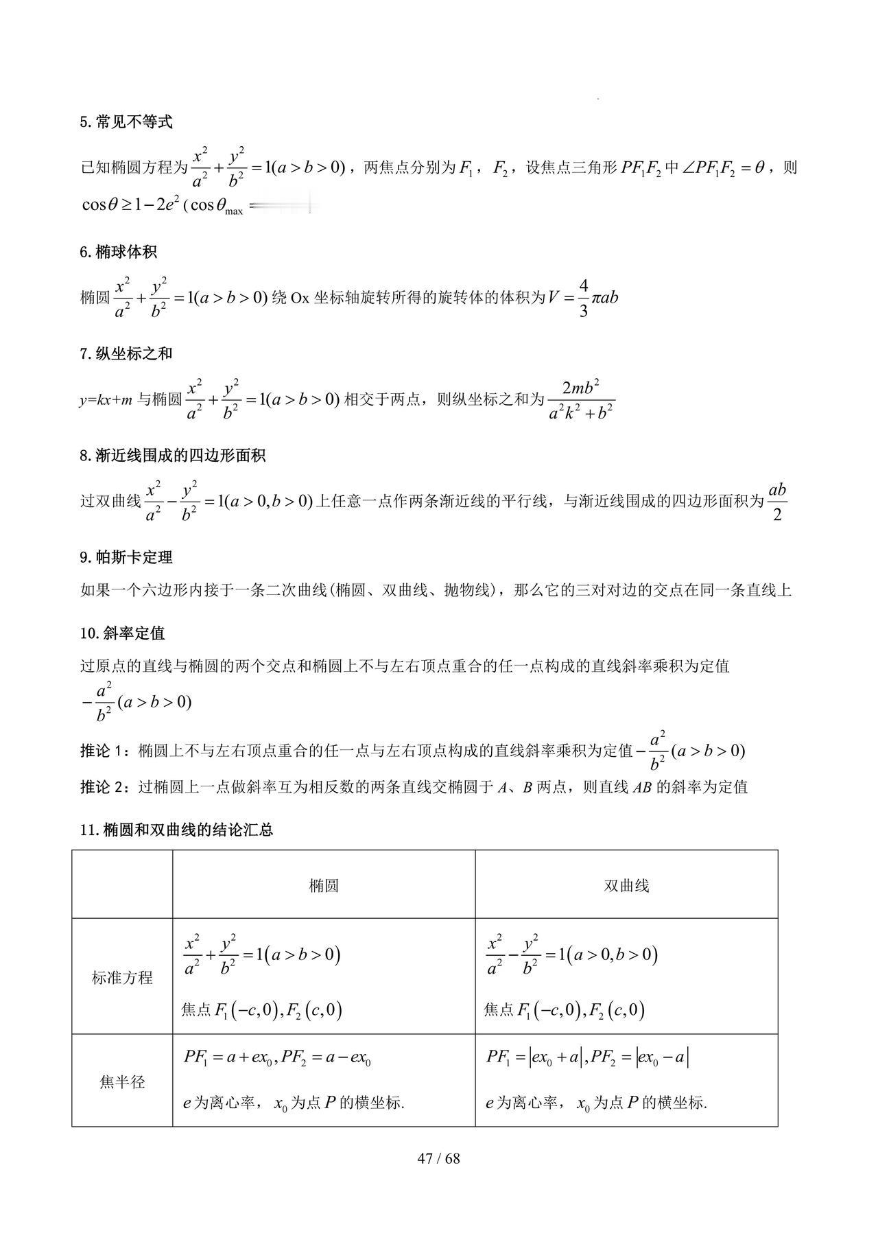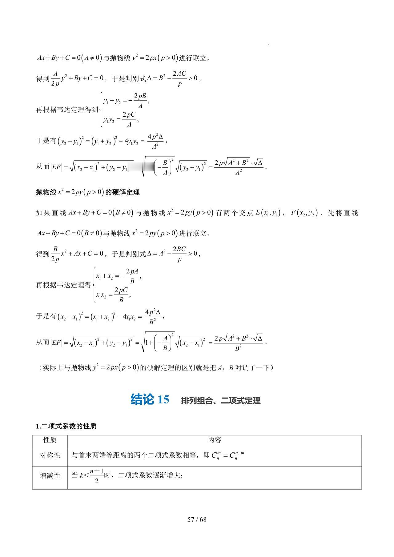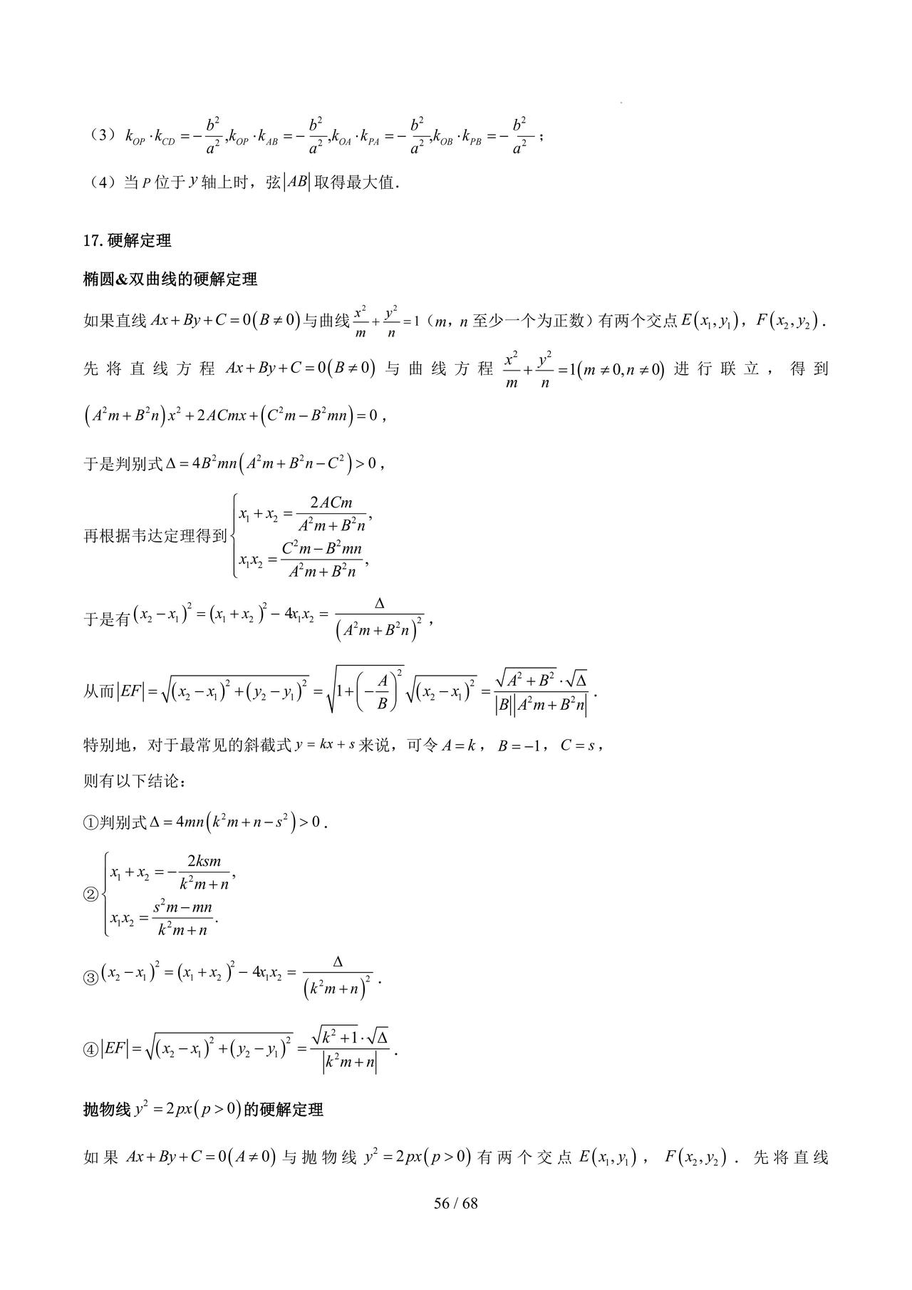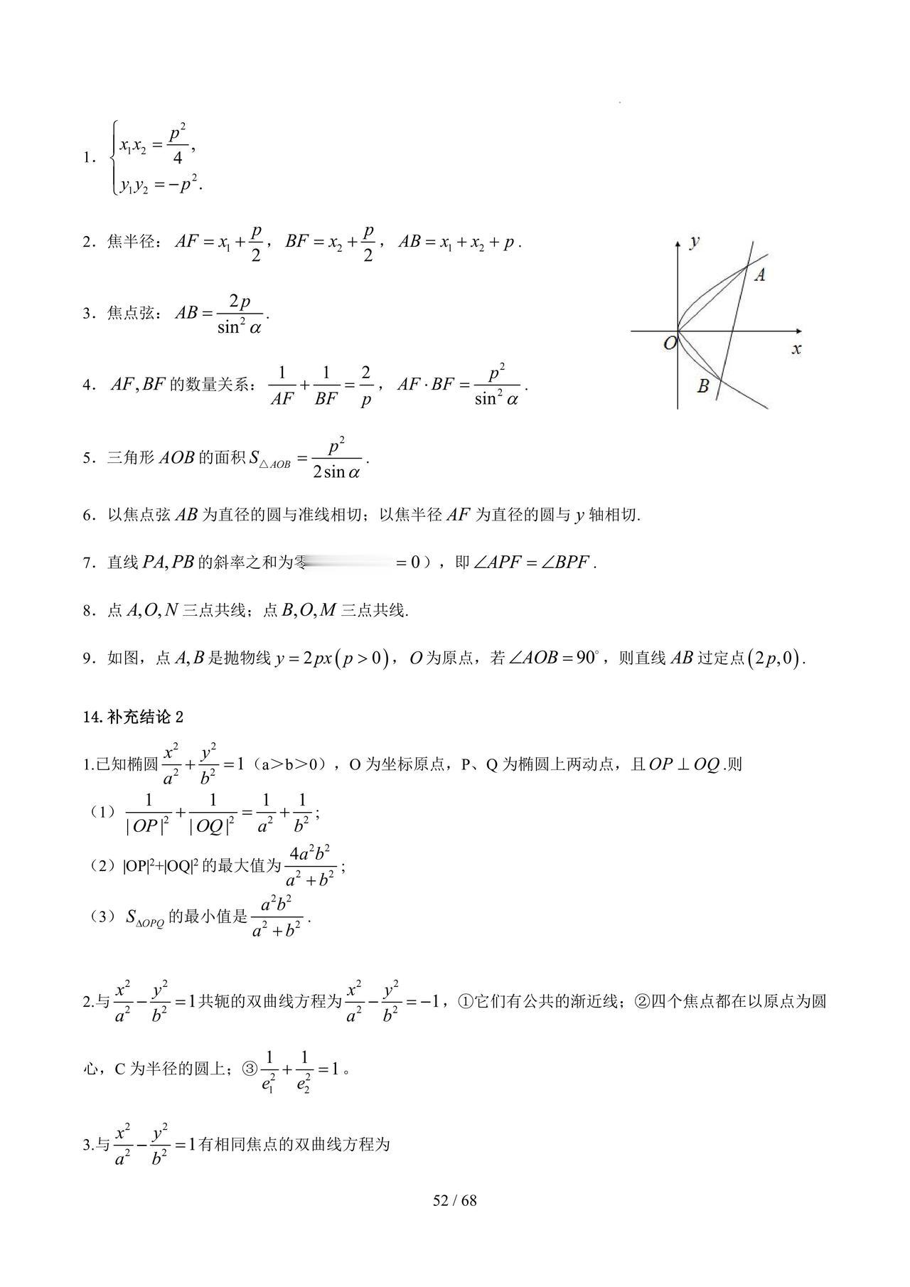 高三数学——圆锥曲线必备结论汇编