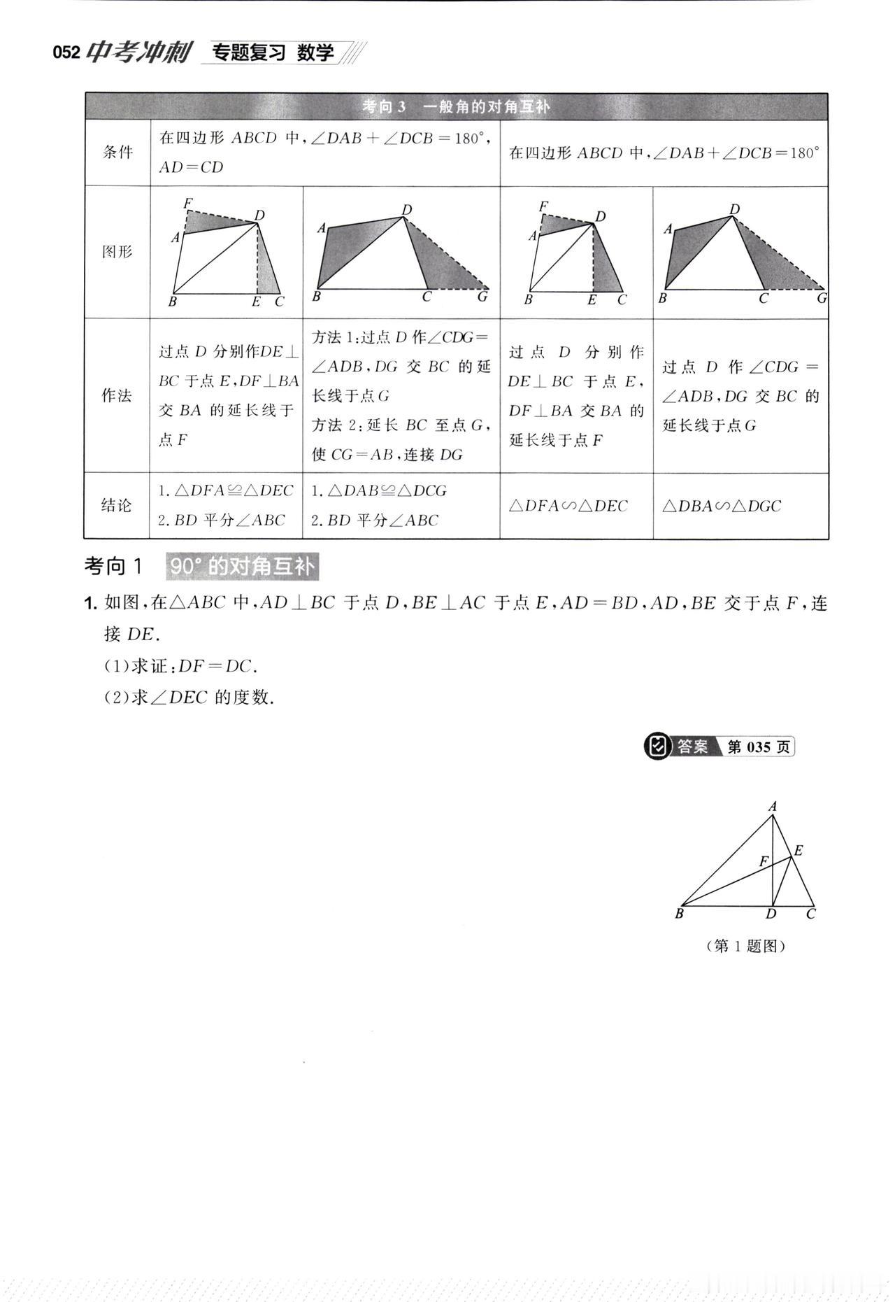 中考数学二轮培优——几何模型精讲 1、对角互补 2、一边一角问题