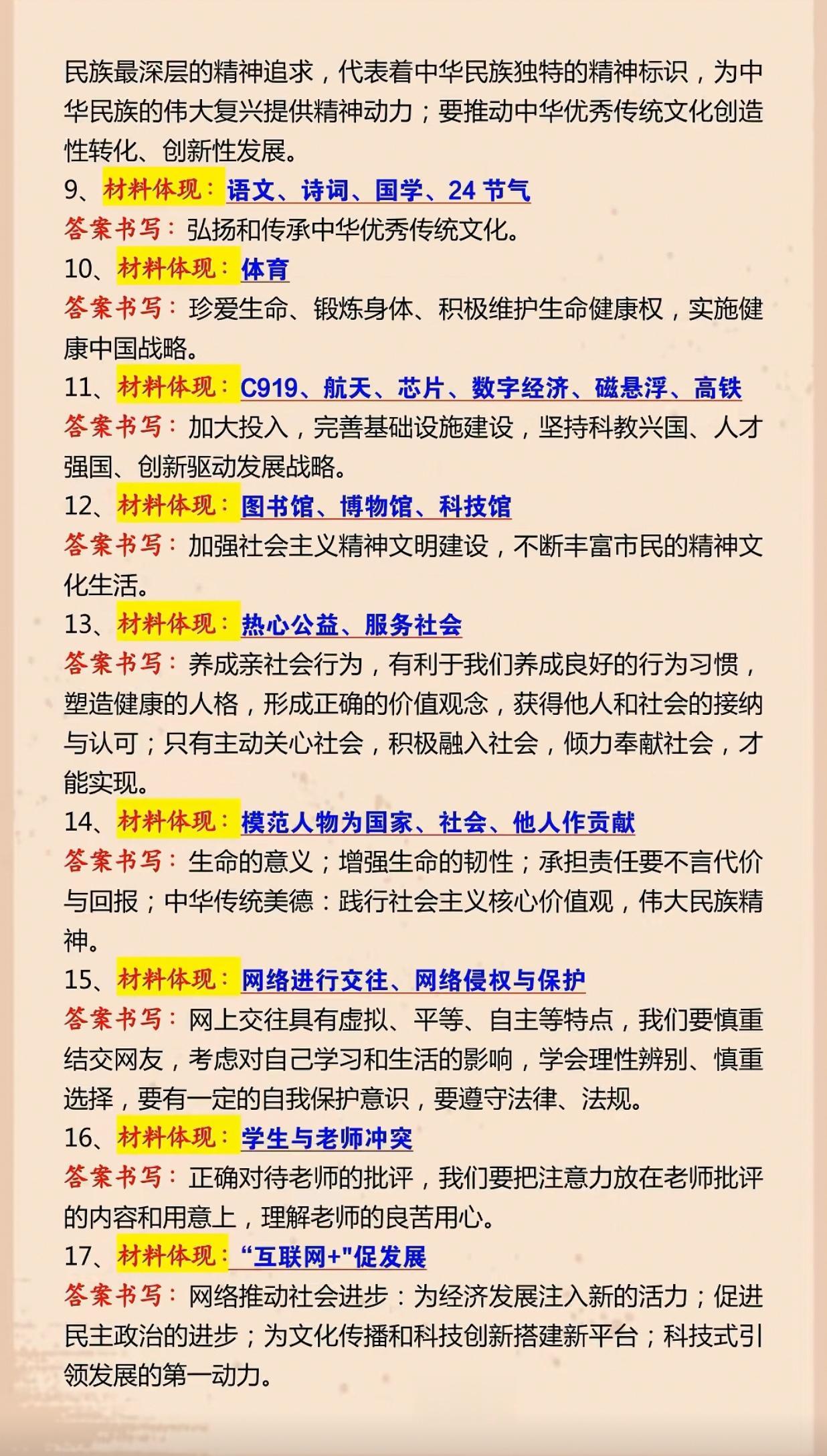 中考道法答题模板—材料转化专业术语17个