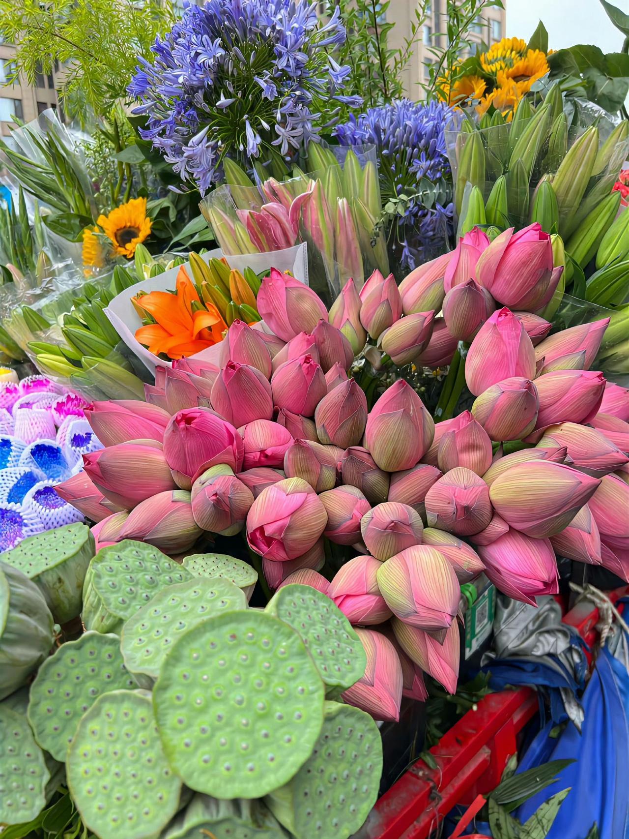 南方大街上有挑着篮子卖荷花的,而北方没有。在南方城镇大街上市场上有好多挑着篮子卖荷花的,有卖荷花荷叶莲蓬等,荷花好看鲜艳夺目,很亮眼;而在北方城镇大街上市场上基本没有看到过卖荷花的,可能有极少量卖莲蓬的,反正没有卖荷花的。