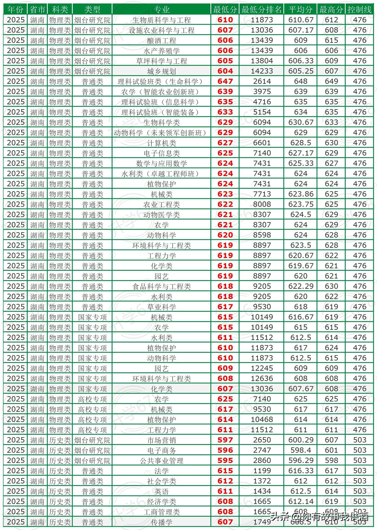【报考必备】中国农业大学2025年湖南省专业录取分。