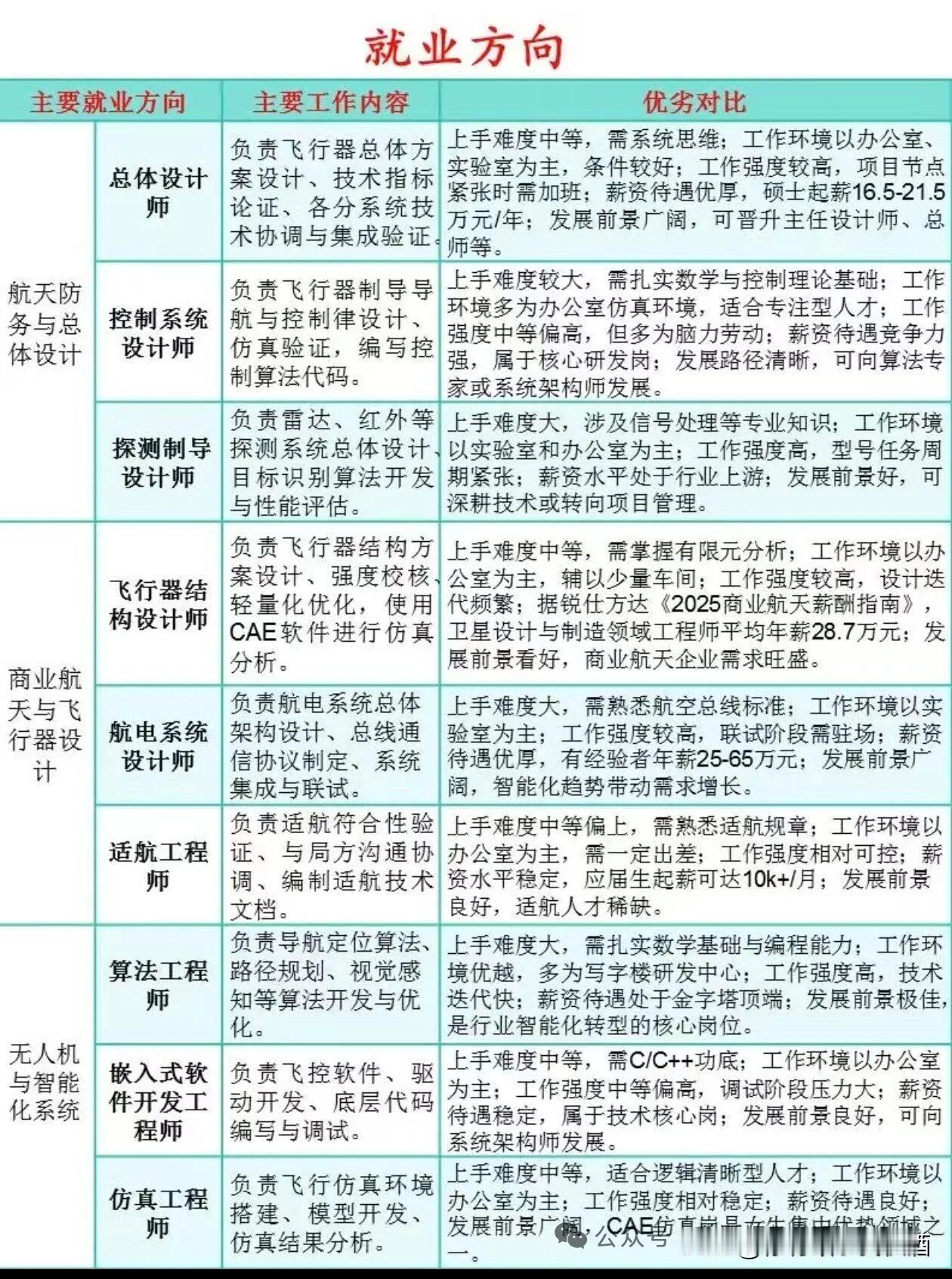 航空航天最好的就业方向。