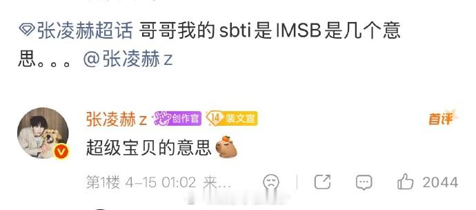 张凌赫说粉丝是超级宝贝 粉丝问张凌赫自己的sbti是IMSB,是什么意思张凌赫:是超级宝贝的意思。属于是媚粉刻在DNA里了……