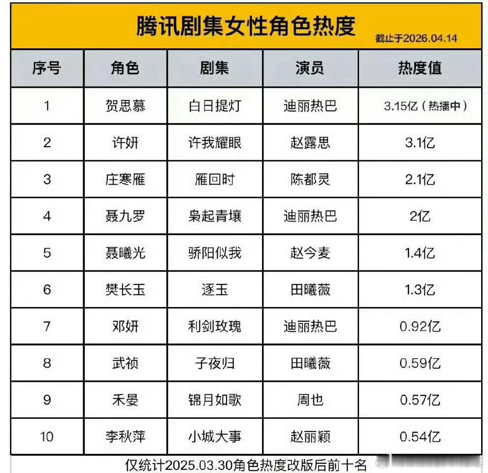 腾讯剧集女性角色热度值啊,不是,这个改版改在哪了?2025年之后热度值上升不是更容易了么?原来一个人最多累计40分,现在最高可以累计50分,这不是摆明了需要的人头数更少了嘛,为了把长相思小夭的第一名给开除掉,真的是无所不用其极了。