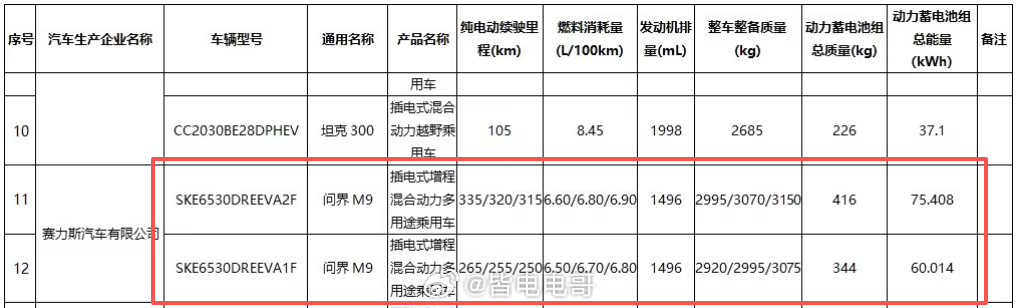 2026款问界M9 车型分增程和纯电两种动力,工信部最近也公布了电池大小