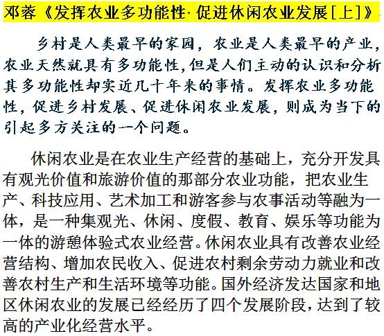 [邓蓉]:发挥农业多功能性 促进休闲农业发展[上]