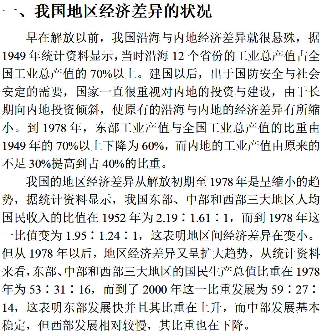 我国国土辽阔、人口众多,但在辽阔的国土上,资源分布很不平衡,人口分布亦很不平衡,这就形成了历史上由来已久的地区经济差异。通过分析和认识我国的地区经济差异,并针对现状利用地区间经济发展的不平衡来推进经济整体发展,这是我们需要探讨的问题。