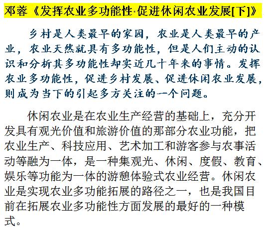 [邓蓉]:发挥农业多功能性 促进休闲农业发展[下]