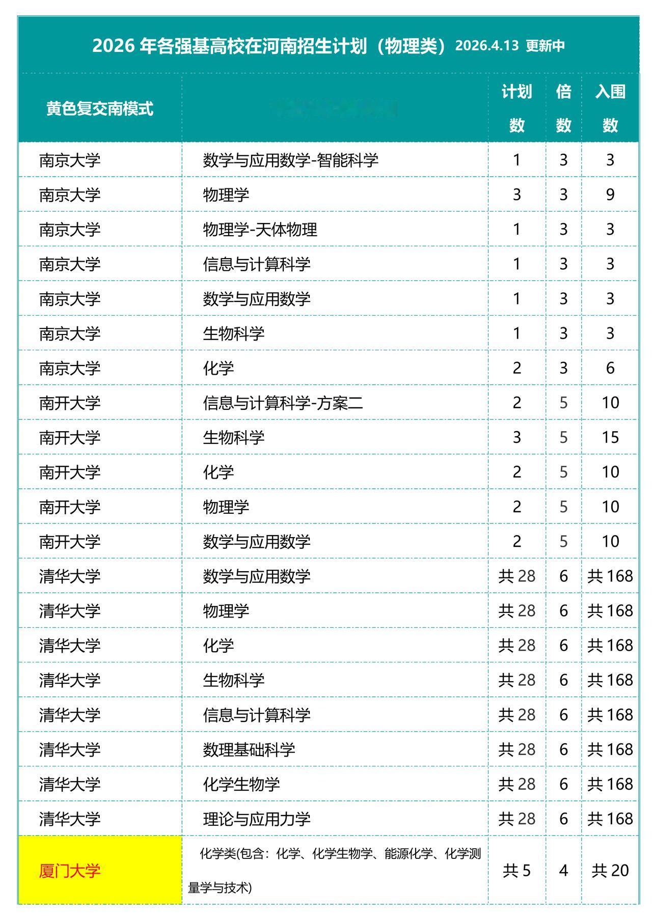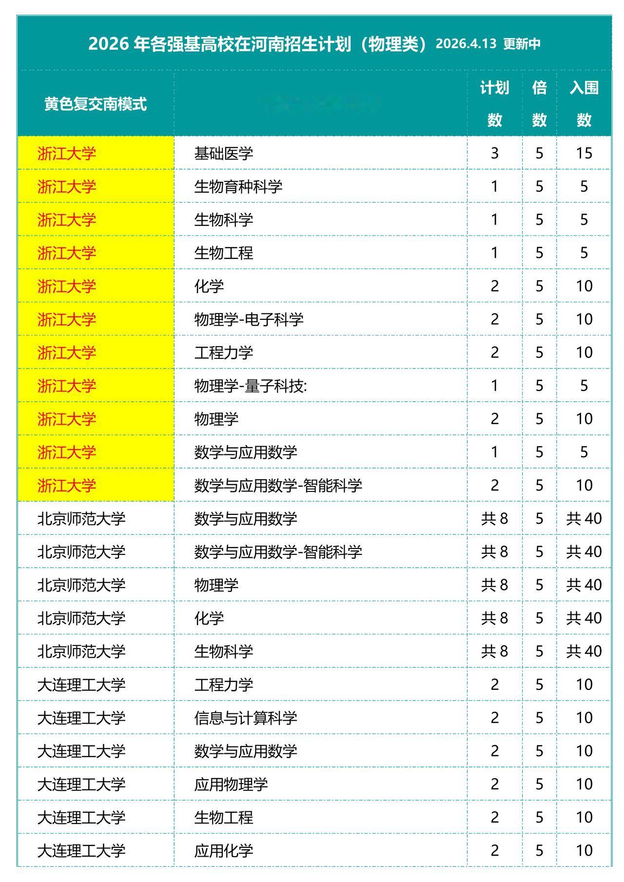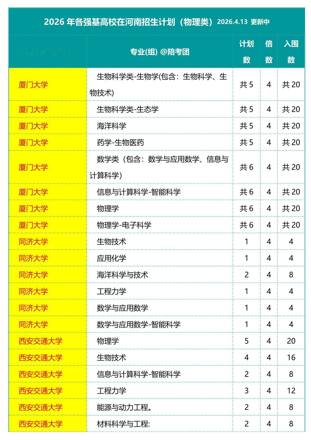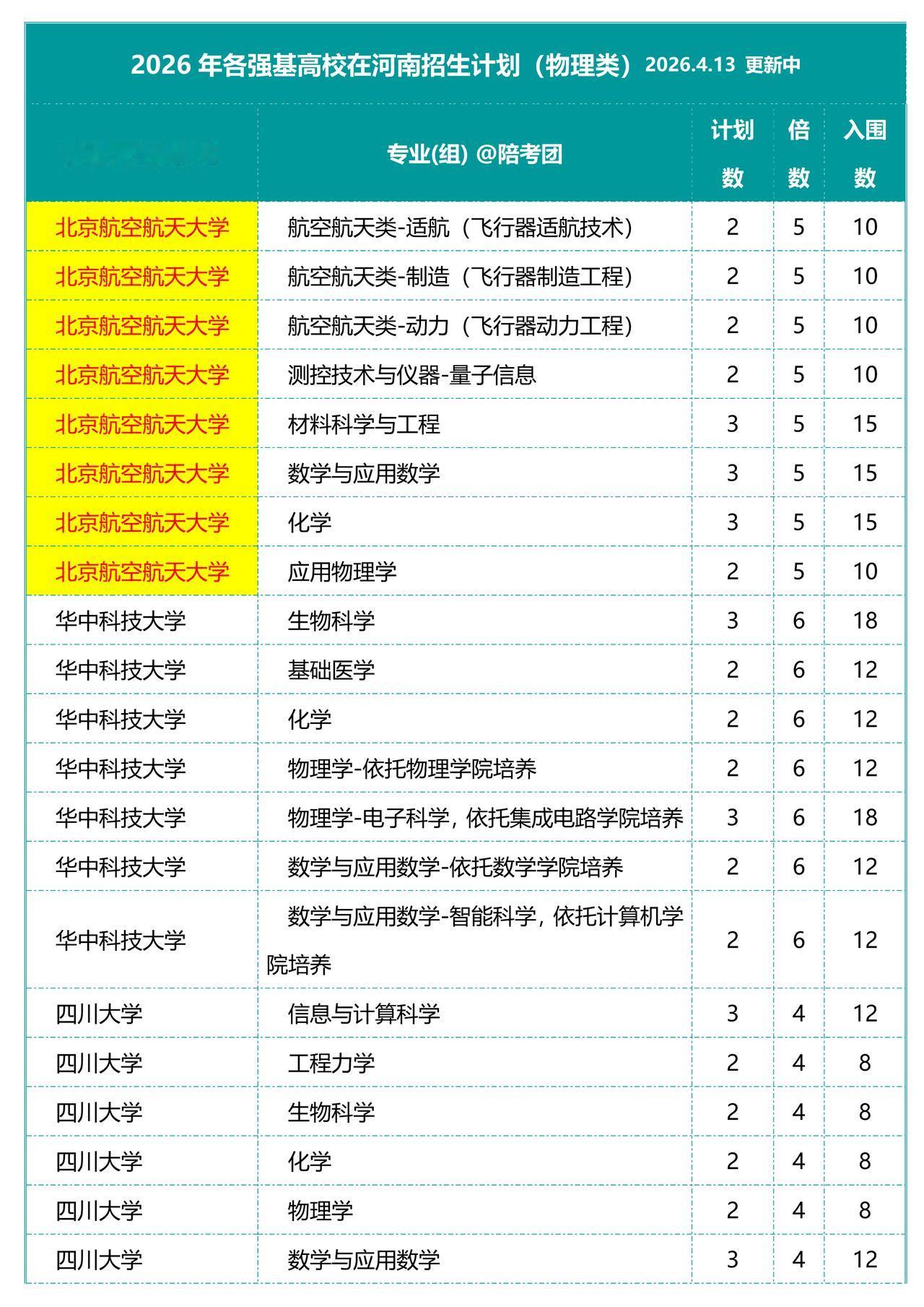 截至2026年4月13日,35所高校强基计划河南招生计划
