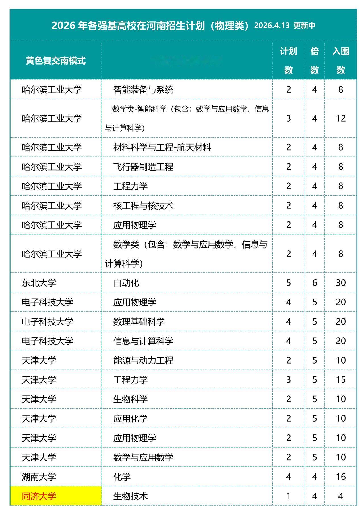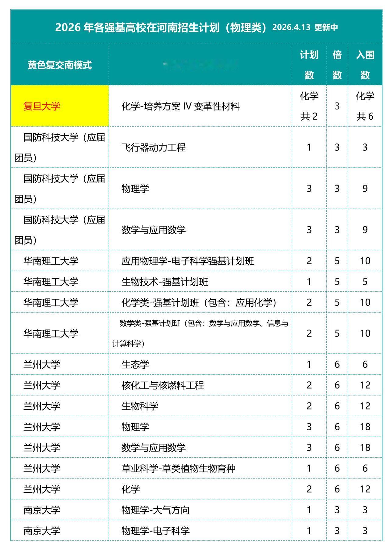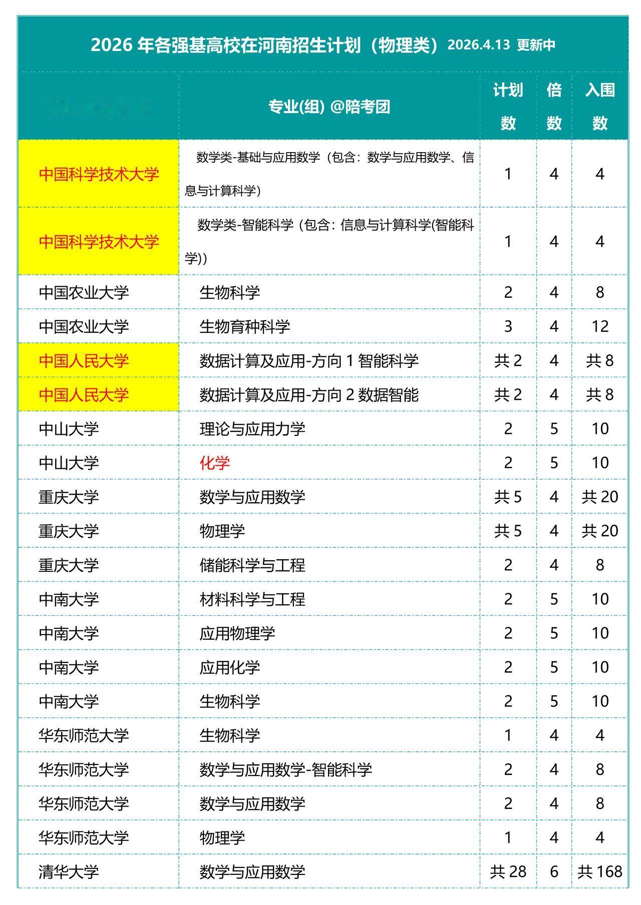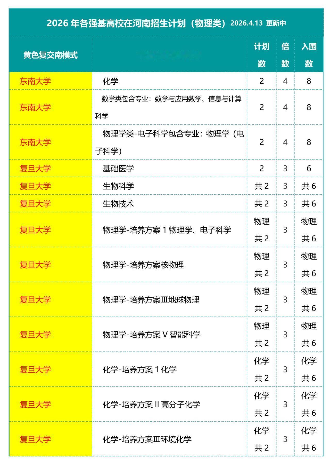 截至2026年4月13日,35所高校强基计划河南招生计划
