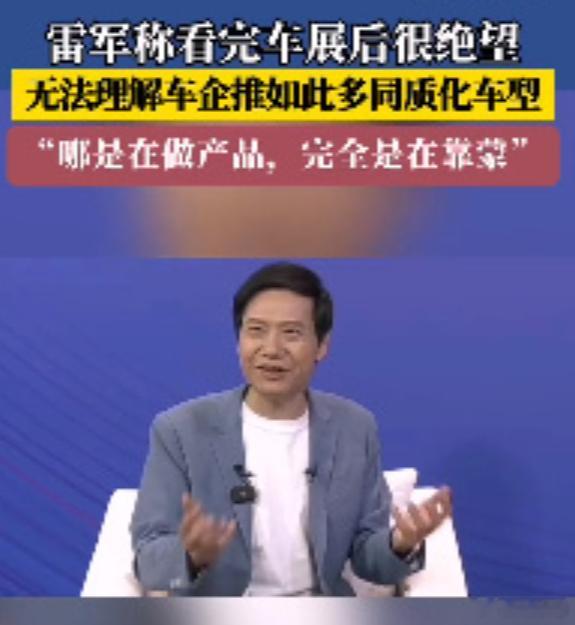 雷军:无法理解车企推如此多同质化车型,“哪是在做产品,完全是在靠蒙”。