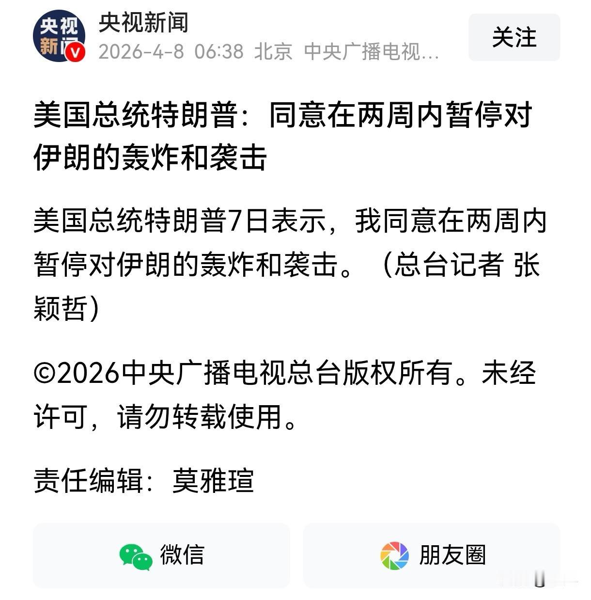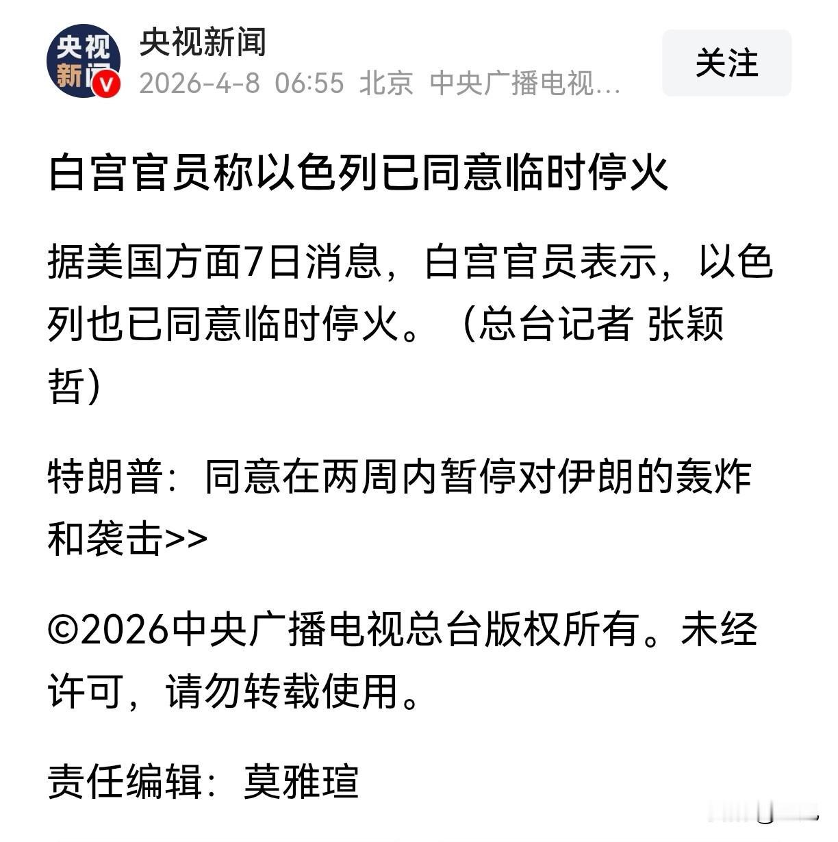 特朗普“最后期限”到期前1小时再次延后两周!这次不一样,伊朗、以色列同时同意临时停火,伊朗还特意声明经过了最高领袖同意,4月10日与美国谈判。