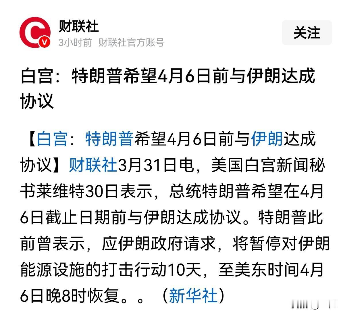 这是特朗普已经推迟了3次的威胁,从48小时、5天到现在的10天,最后期限是美东时间4月6日晚8时。这个是最容易做到的,美军占据制空权一直在轰炸,改为炸能源设施比炸军用设施更容易。但这样公然把民用设施当目标,一但实施将无差别祸及平民造成巨大的人道主义灾难,这是反人类的大罪!何况伊朗已经明确表示会对等反制,到时将进入互相毁灭模式,打不到美国,中东各王爷国倒霉,油价涨市场跌选票丢,特朗普也就干不下去了。
