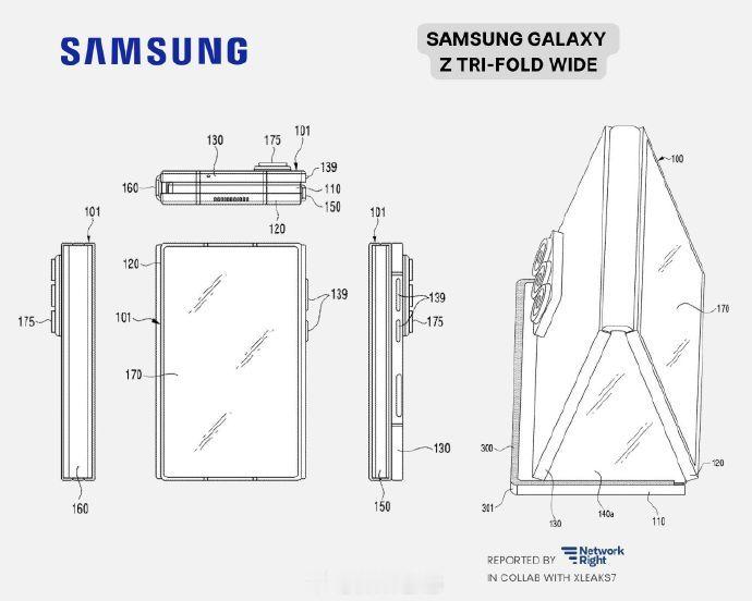 三星三折阔折叠 Galaxy Z Tri-Fold Wide 现身三星专利库,背面是竖置三摄模组,就是展开后比例会不会太怪了,感觉会是那种又宽又长的屏。