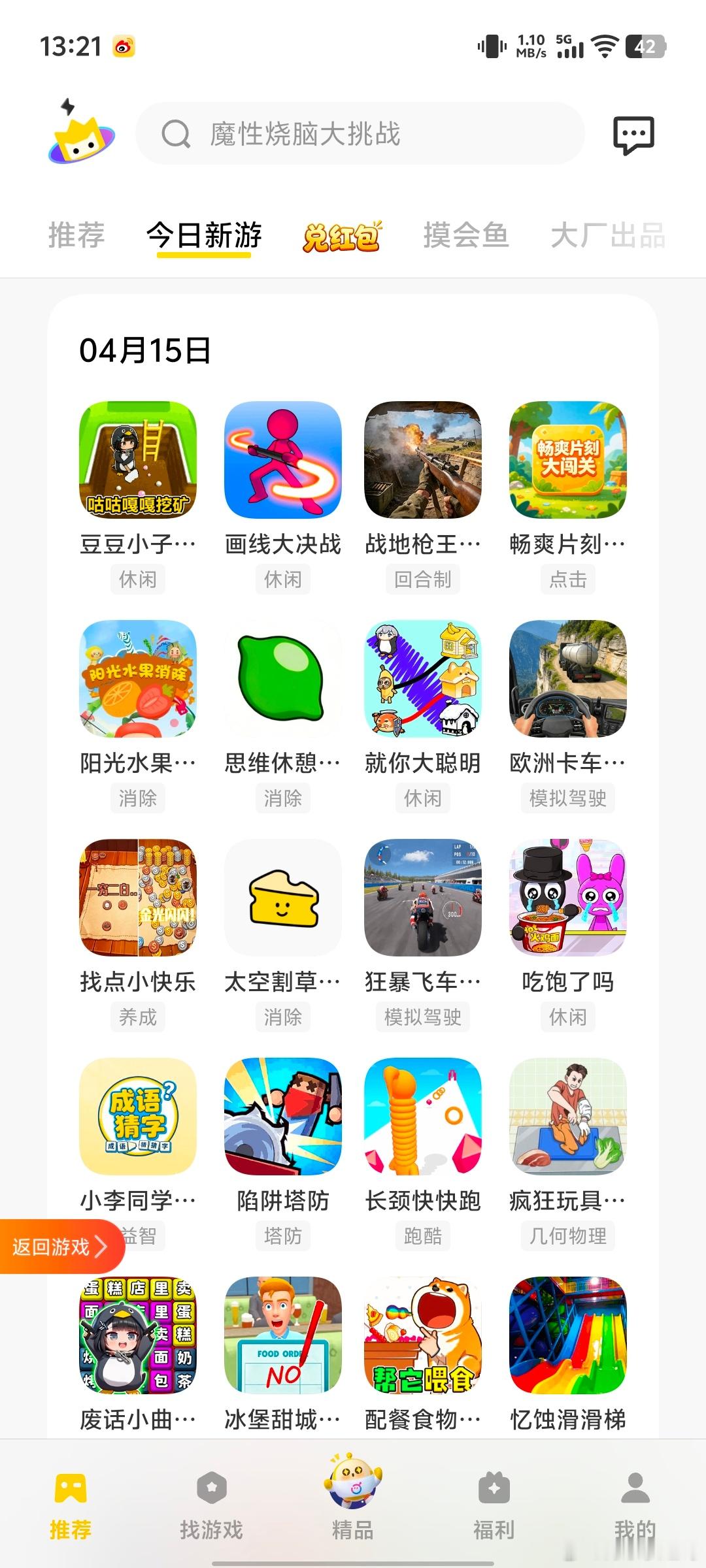最近我儿子可喜欢玩小游戏了,每次都去抖音里找,而且玩着玩着就广告跳转,特别苦恼,后来我就发现了vivo小游戏这个 app,因为我不玩就忽略了它,没想到这个 app太适合日常放松和带娃了!