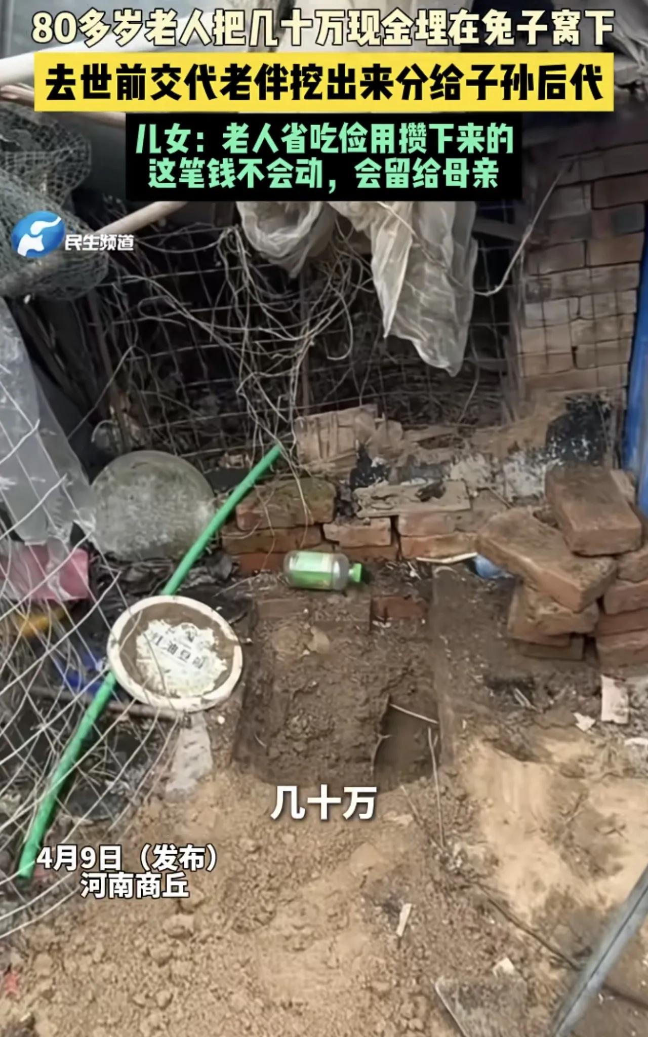一辈子的积蓄数十万用塑料袋子装好了,埋藏在兔子窝下面,等着儿孙们到齐了,扒出来给大家分一下。