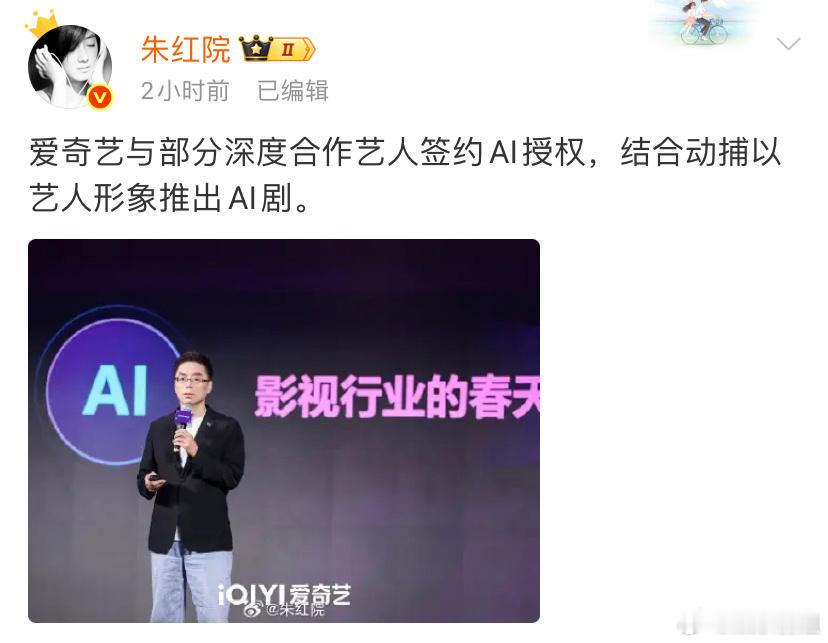 曝爱奇艺与深度合作艺人签约AI授权 🍉爱奇艺找了不少深度合作的艺人要了授权,结