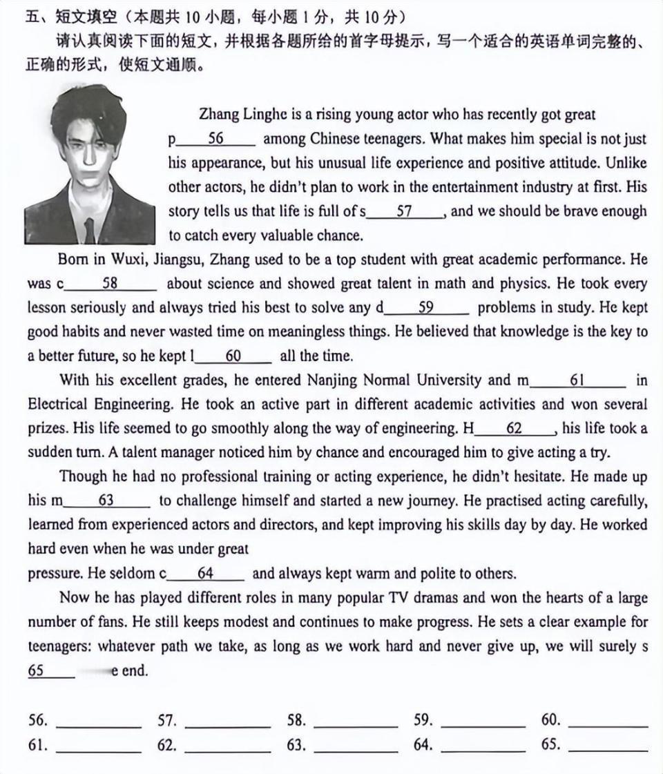 张凌赫登上江苏英语试卷!!