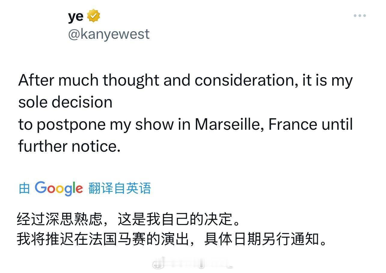 Kanye宣布推迟在法国的演讲会!同时表示会为自己负责此前法国内政部长表示考虑采