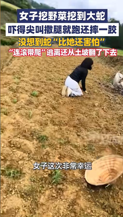 据媒体报道,事发那一天,女子一行人相约去挖野菜,几个人收获颇丰,一切安好。可突然间,她挖到了一个不速之客,一条大蛇,又粗又长的。女子当即就被吓坏了,尖叫着扭头就跑。