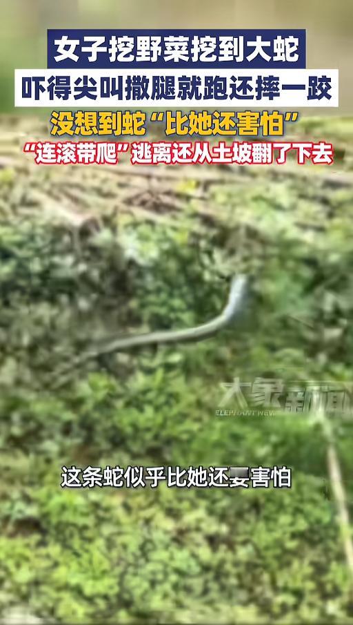 信息来源:《4月13日(报道)四川女子一行人挖野菜意外碰到大蛇,人和蛇都吓坏了!》大象新闻