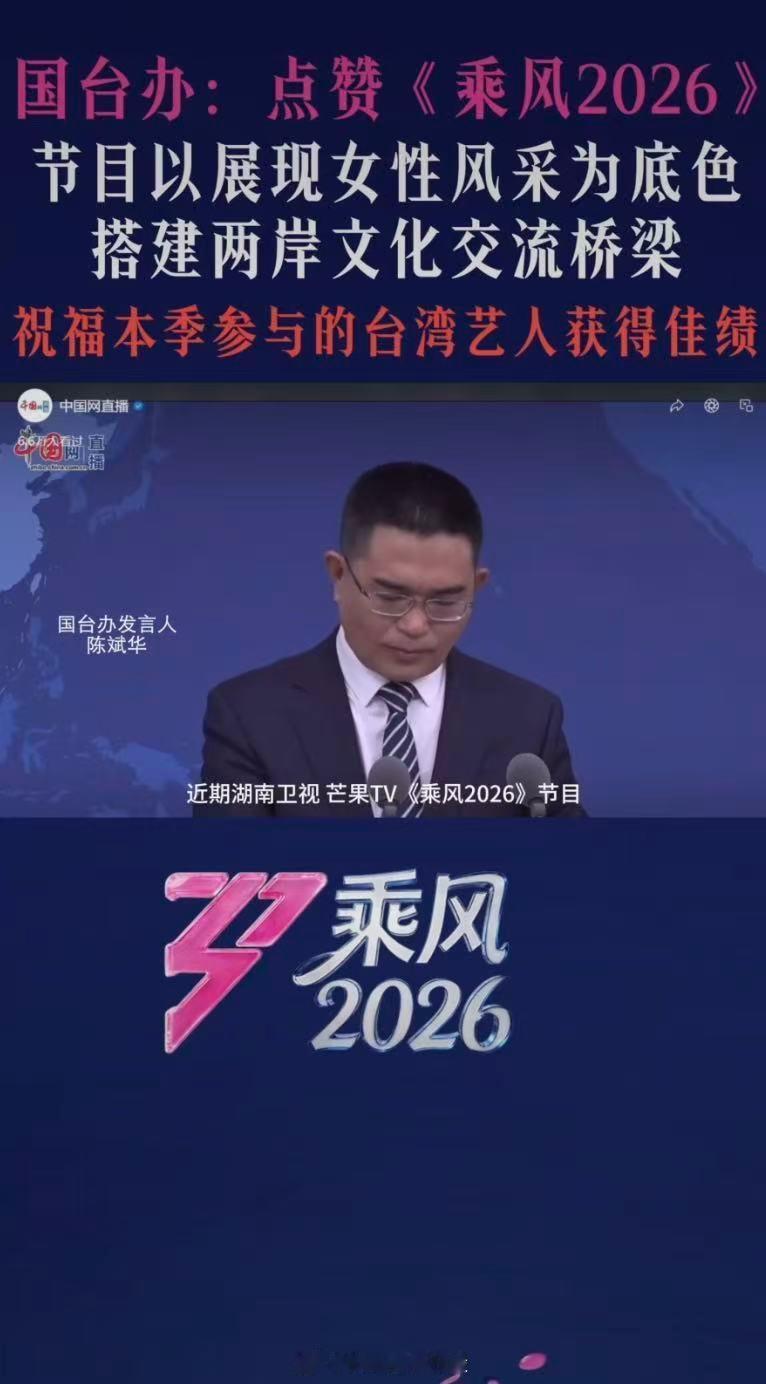国台办点赞乘风2026乘风2026 国台办:乐见《乘风2026》这样的交流平台,