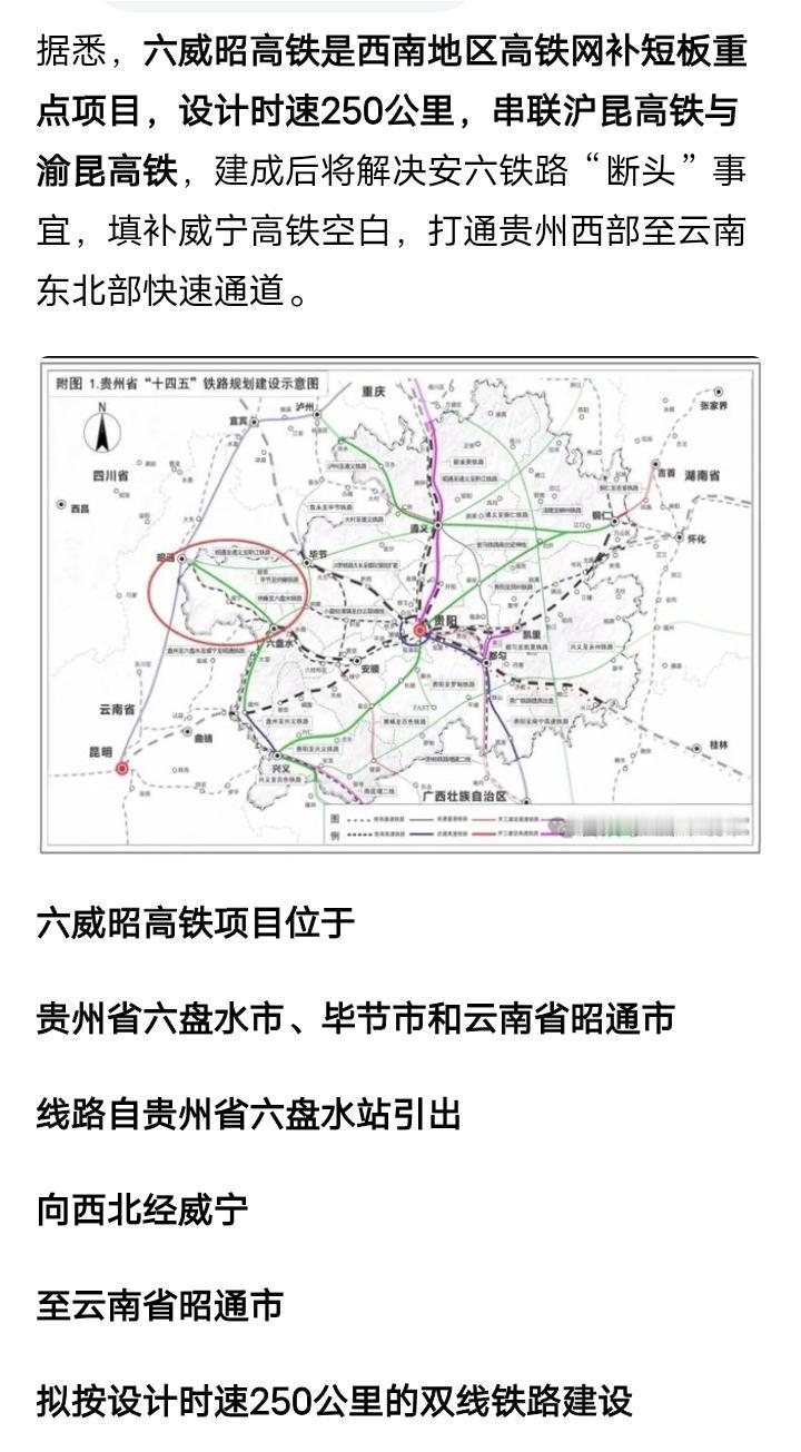 好消息,贵州六盘水至云南昭通未来将建一条时速250公里的直达高铁,目前正在处于讨论研究等前期工作,未来从六盘水站坐高铁来往昭通东站(3台7线建设中)只需40分钟左右,六威昭高铁全长约147公里,起于六盘水站接安六高铁,止于昭通东站接时速350公里的渝昆高速铁路,沿途在毕节威宁设站,六威昭高铁未来建成后昭通和威宁坐高铁来往六盘水和安顺等地将更加便捷,威宁将结束不通高铁的历史,昭通东站也将成为高铁枢纽站,昭通东站目前正在最后的室内外装修阶段,预计今年6月底实现静态验收,年底与渝昆高速同步投入运营。