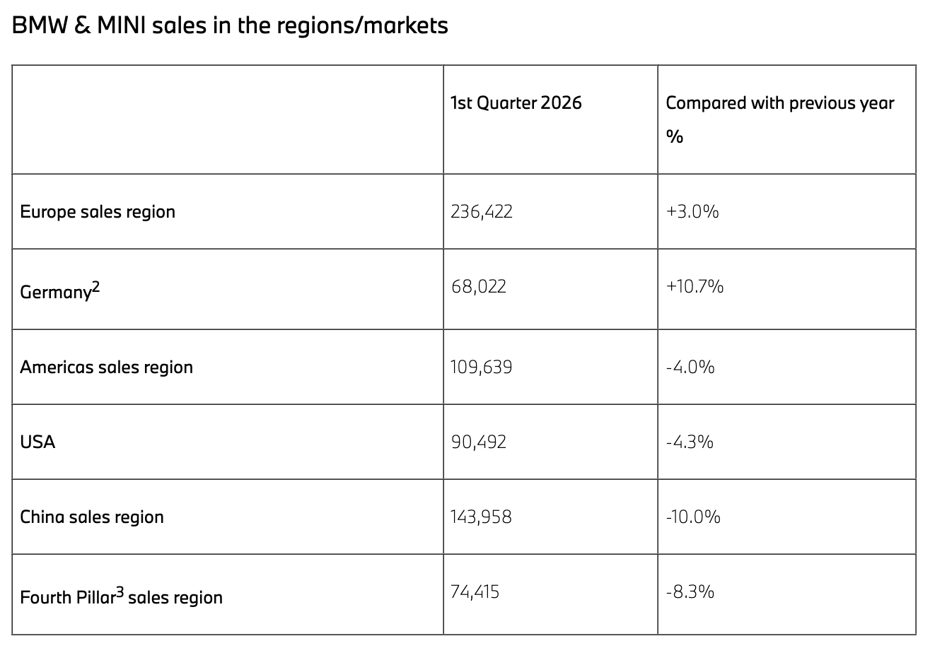 中美市场拖累!宝马一季度全球销量下滑,其中中国下滑10%,美国下滑4.3%。