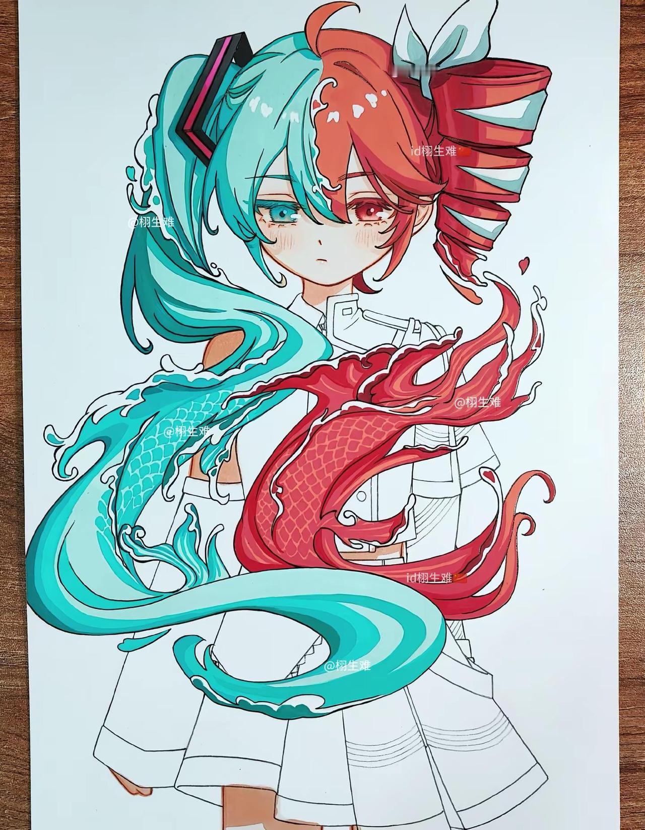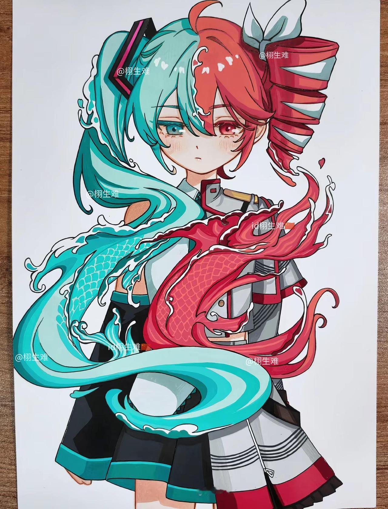 画个恰到好处的双音!二创 手绘 初音未来 重音teto