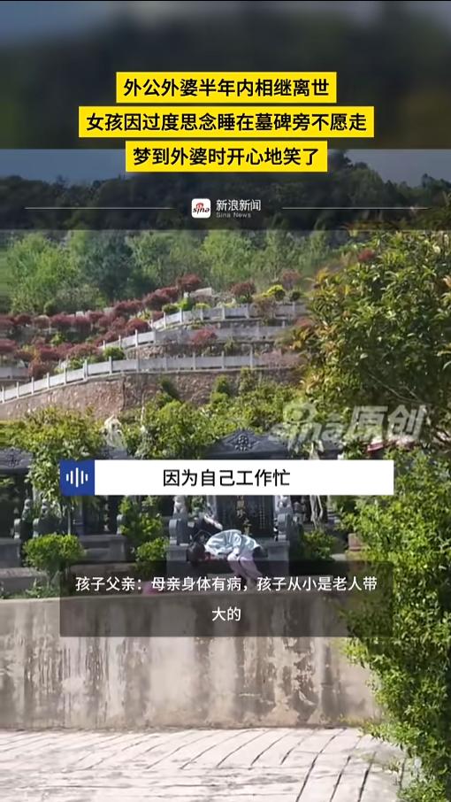 信息来源:《外公外婆半年内相继离世,女孩因过度思念睡在墓碑旁不愿走,梦到外婆时开心地笑了》新浪新闻