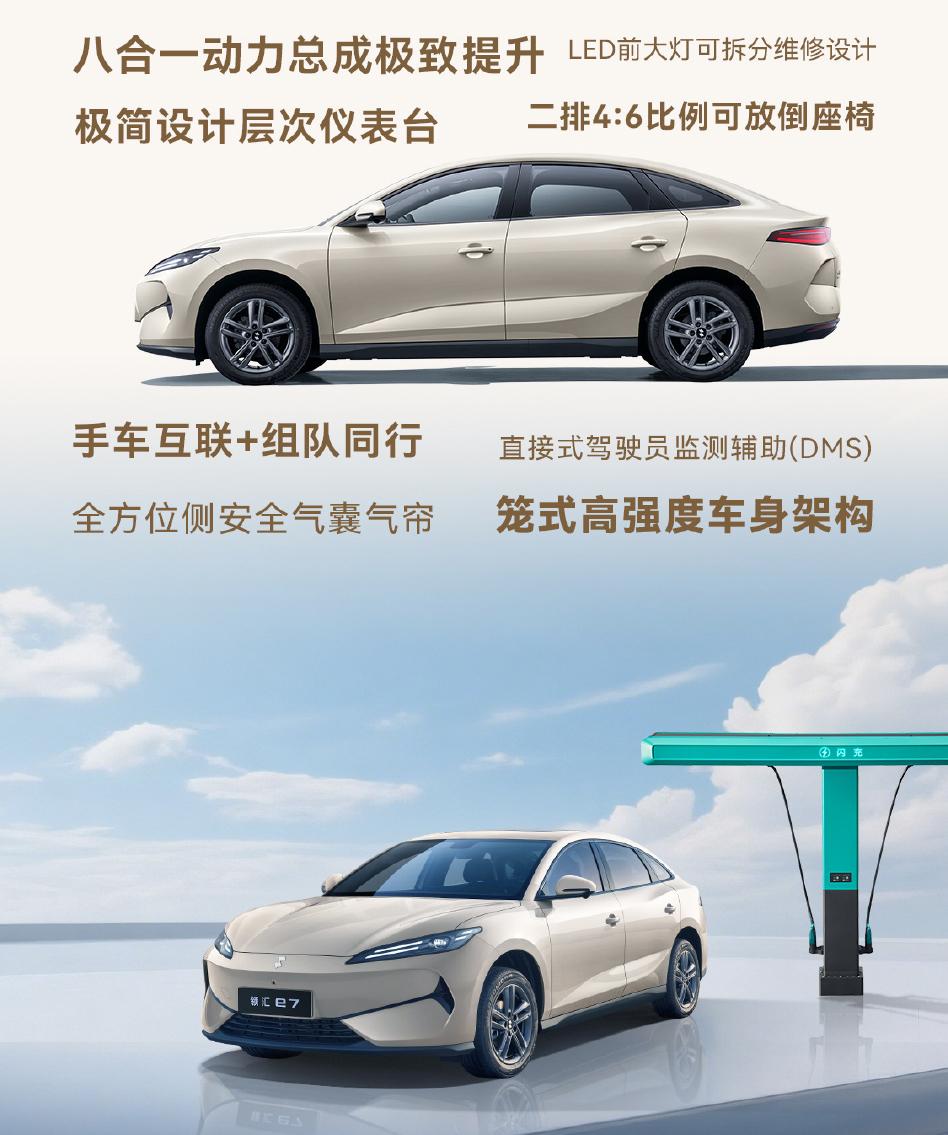 最后聊聊续航和性价比。领汇e7提供450km、520km和550km(闪充版)三种CLTC续航版本。其中550闪充版仅10.98万起,配上5分钟快充,日常通勤一周一充,长途也能说走就走。而且车身用了笼式高强度架构,全系标配全方位侧气囊气帘,安全不缩水。9.58万起,5分钟闪充,中级车尺寸,你们觉得这台领汇e7能不能干翻秦PLUS EV和埃安S?【来自懂车帝车友圈】