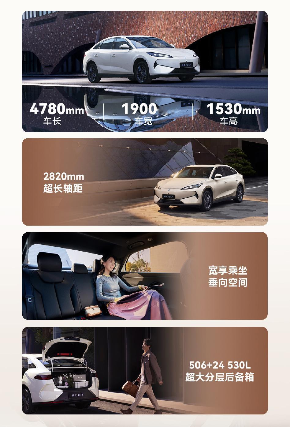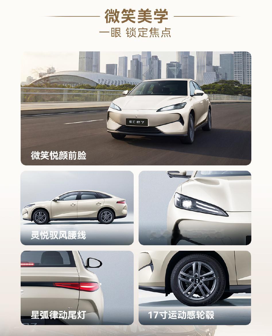 再说说设计。领汇e7采用了“微笑美学”——前脸是一个上扬的“微笑悦颜”造型,这前脸看起来心情都好多了。侧面灵悦驭风腰线+17寸运动轮毂,内饰有15.6英寸悬浮大屏、DiLink100智能座舱、全场景语音控制等配置一点不含糊。空间方面,后备箱容积506L,放倒座椅后能扩展到1530L,搬家拉货都不虚。主打就是新家比和实用。